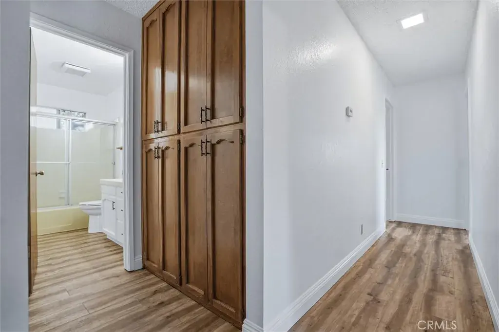The dining room’s sliding glass door opens to a generous concrete patio with a built-in wood-burning barbecue pit—ideal for entertaining and gatherings. Multiple access points to patios, the breezeway, and backyard enhance the home’s easy indoor-outdoor lifestyle.
