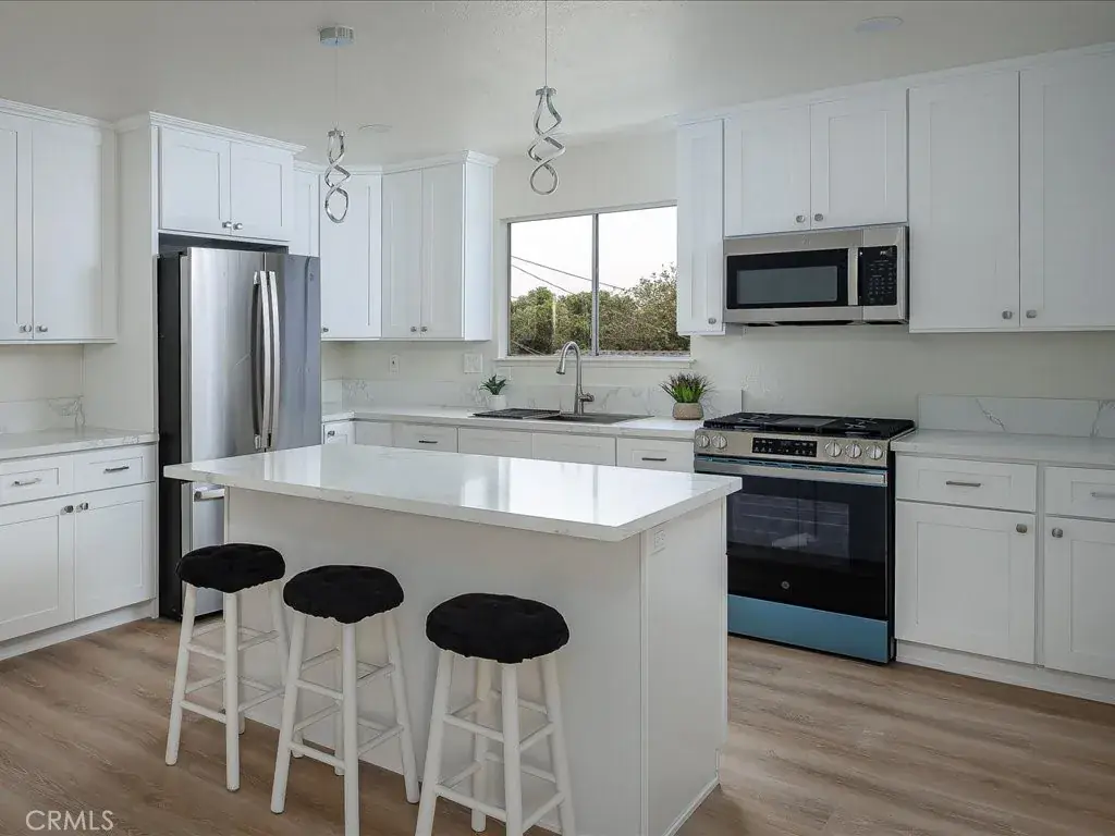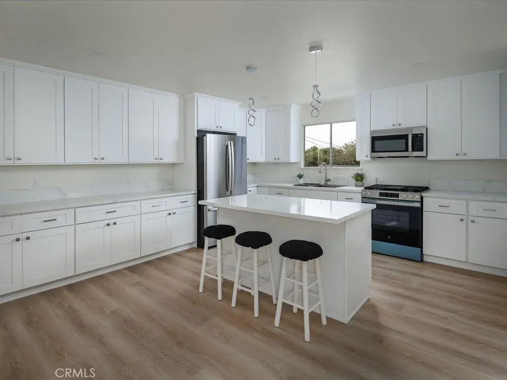 This 2 story home has great views of mountains to the S/W, the bay, sand dunes, and peaks of the ocean. Up stairs you find a large living room with views, a franklin stove, the primary bedroom & bath, and a beautiful new spacious kitchen with shaker cabinets and self closing doors and drawers, quartz countertops, and recessed lighting. The interior of the home has just been painted and new baseboards added. New vinyl plank flooring has been installed in the entryway, stairs, living room, kitchen, and primary bedroom. The sliding glass door in the living room leads you to an 8′ x 26′ deck to watch those beautiful sunsets and enjoy outdoor living. Downstairs you’ll find two more bedrooms that share the Jack & Jill 3/4 bath and a 3rd bathroom. In the front of the home there’s room to park 5-6 cars off the street. The front yard has a small deck, a fig tree, fenced in area for fido or a garden and a large decorative avocado tree. Motion sensor lighting greats you at night from the driveway up to the front door. There’s a great shed/workshop in the back yard with skylights and electricity. Wiring already installed in the back patio for your hot tub. Lots of great storage along the north side of the house. Originally the home was built with a 2 car garage. One side has been sectioned off with a small closet so you can create a 4th bedroom, exercise room, office, game room for the kids or take out a wall and return it to a 2nd car garage.