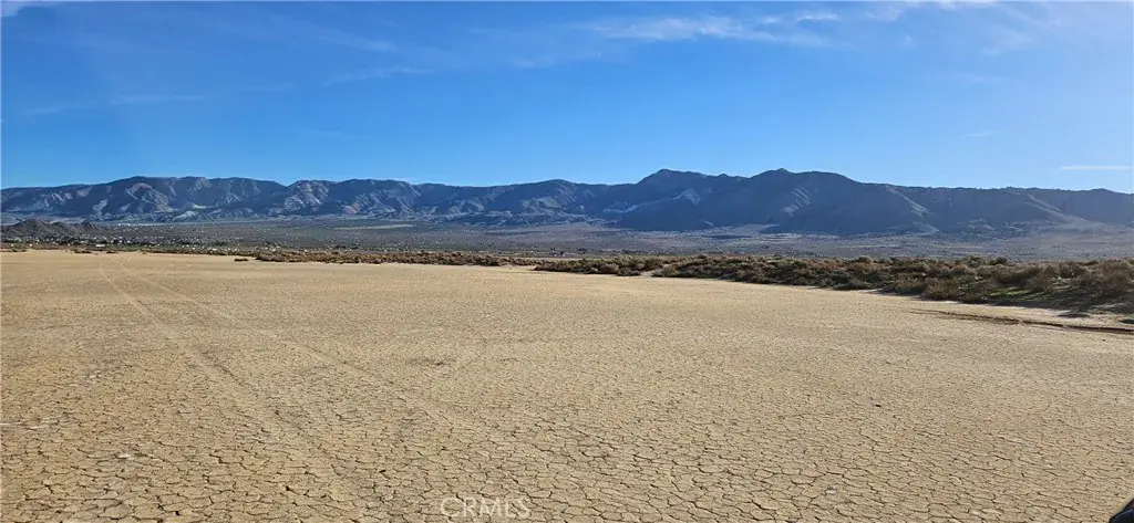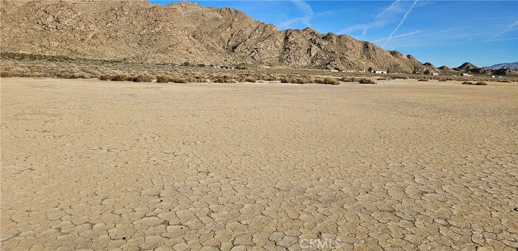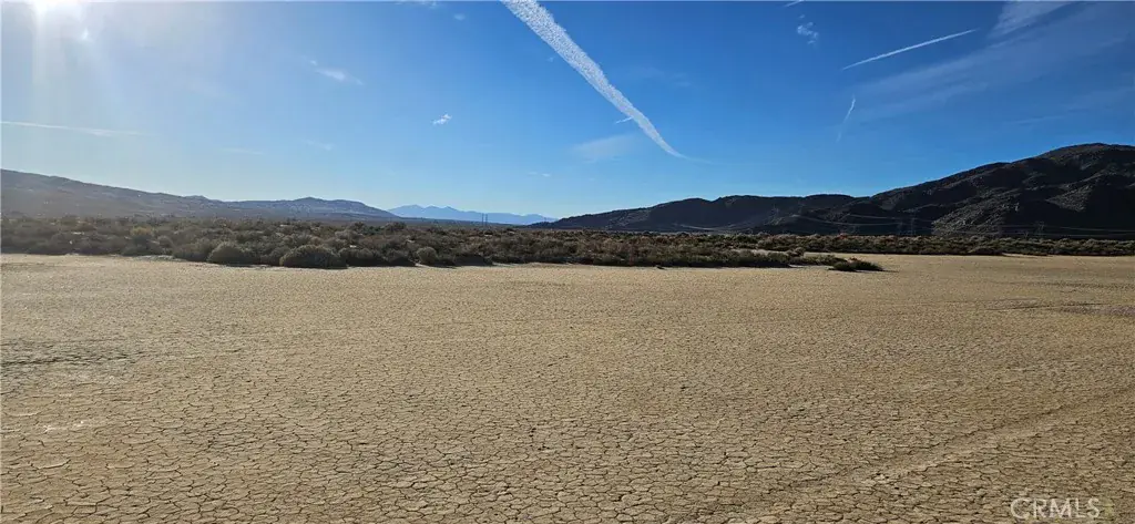 Ten acres of open desert land set within a quiet dry lake bed, framed by expansive mountain views. The property features native desert vegetation and wide, unobstructed sightlines that highlight the scale and stillness of the surrounding landscape.