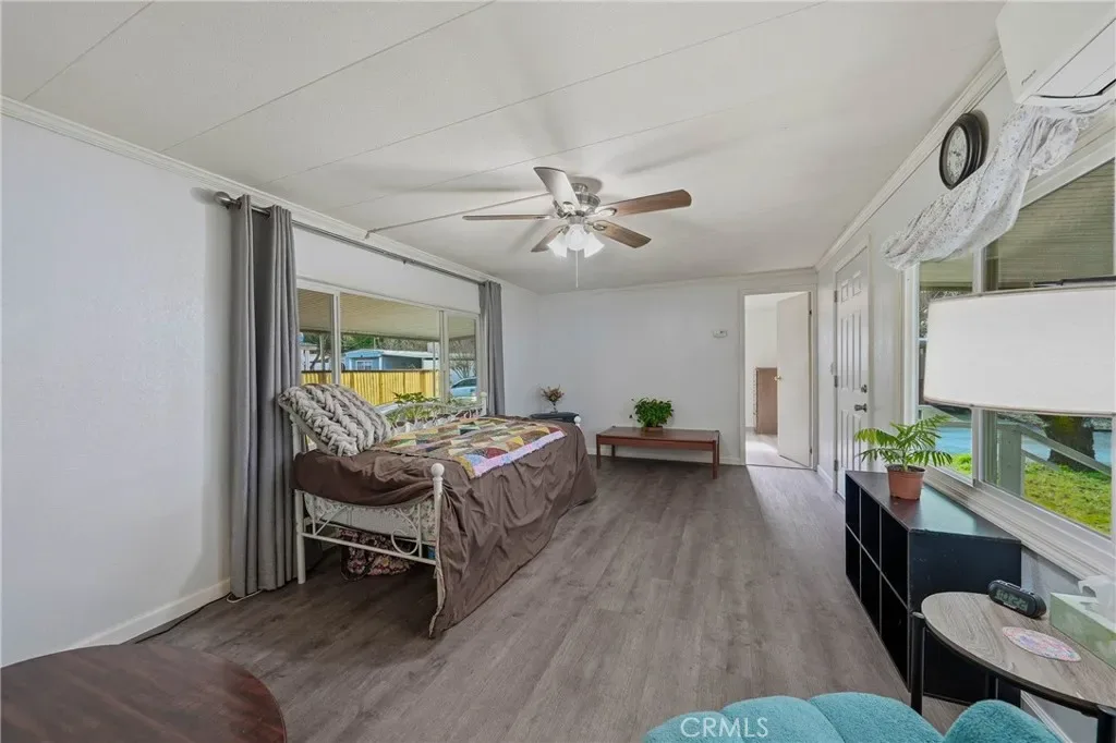 Adorable and cozy 1971 single wide in the Lorraine Village Senior 55+ Mobile Home Park in Lucerne Ca. 720 sq ft of living space offers 2-Bedrooms, 2-Bathrooms. Fairly large primary Bedroom and is next to the Full Bath with shower and tub. Natural light fills the cozy Living Room with a ceiling fan and a new mini split. Freshly painted kitchen with new refrigerator, electric cooktop stove, and new microwave. This is a solid mobile home that has been redone with new Floor coverings in all the rooms. New double-pane windows and screens except for the bedrooms, new foam insulation (foam sheets) in all outer walls, replaced some sub-flooring, and new sheetrock on front room interior walls. New fire-resistant doors both front and back as well as a new storm door. New toilets in both bathrooms, new bathtub and surround, all new plumbing, new sink, and new washer and dryer. Low maintenance partially fenced yard with a walnut and persimmon tree. Storage shed out back to store the extra belongings. Space rent 585.00 a month/water, garbage and sewer are billed separately thru the mobile home park. MUST GET PARK APPROVAL.