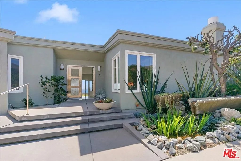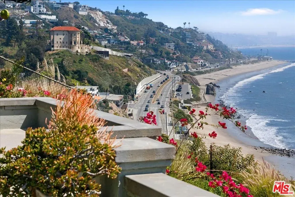 A rare find on Coastline Drive, this expansive single-story home offers front-row ocean views near the Palisades-Malibu border. The airy living room features a built-in bar, cozy fireplace, and glass doors that seamlessly connect to the outdoor spaces, perfect for entertaining. The sunlit kitchen boasts panoramic ocean vistas, while the primary suite offers sunrise views, dual walk-in closets, and a luxurious en-suite bath. A versatile media room can easily double as a fourth bedroom. Built in 1990, the home’s modern design stands out in a neighborhood of mostly 1960s builds. The spacious backyard patio is ideal for lounging and dining, complete with a built-in BBQ and multiple seating areas. With an oversized two-car garage and close proximity to Palisades, Malibu, and the Getty Villa, this home epitomizes coastal living at its finest.