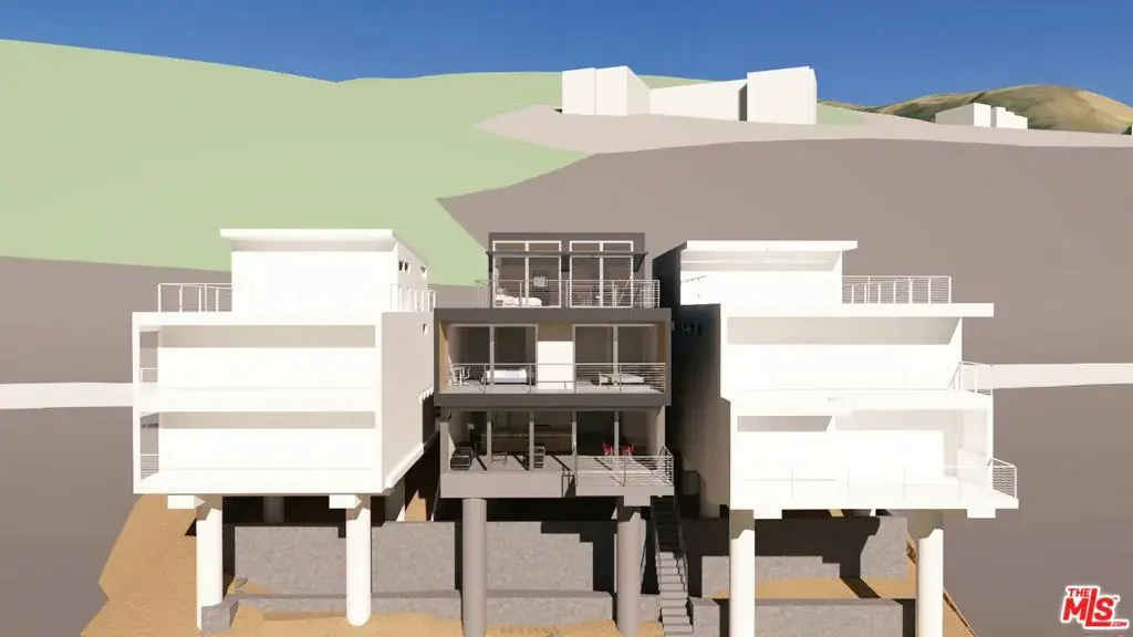 This property held a three story 4 br 3 ba duplex of 2,732 sq. ft that was built in 1957, until the Palisades fire destroyed in in January of 2025. The Seller have come to the conclusion that their insurance is insufficient to replace the Duplex that was destroyed with the necessary code upgrades. The Fire replacement code allows what was there before plus 10% so the new structure totals 2,975 sq feet plus a 440 sq. ft. garage. The design also includes 735 sq. ft. of decks. The design can either be used as a duplex or a single family dwelling by opening a connecting door. No Coastal Permit is required because of the Governor’s order regarding rebuilds. Please make an appointment to look at the plans by Vitus Matare & Assoc. Photos are actually Architectural renderings of the proposed house.