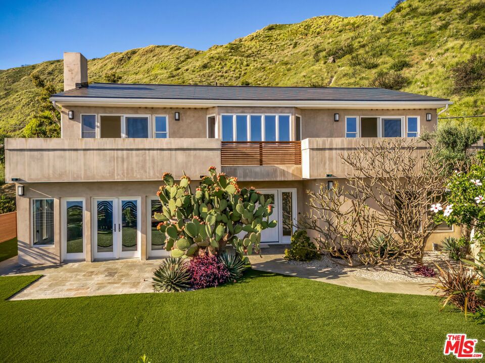 Ultimate Sustainable Malibu Luxury, Remodeled, Sweeping Ocean View Estate with a Tesla Solar Roof. Experience the pinnacle of coastal luxury in this beautifully remodeled 2-story masterpiece located just 3 miles from Sunset and PCH and minutes from Santa Monica in Malibu’s highly coveted Big Rock neighborhood. Perched above the Pacific with panoramic, sweeping views of the ocean, city lights, and Catalina, this 4-bedroom, 3.5-bath home with an office, offers unparalleled privacy and ocean views from the entire front of the house. Sustainable living meets sophisticated design, highlighted by a $200,000, 13.4 KW Tesla Solar Glass Roof, two Tesla Powerwalls, and a dedicated EV charging station. Inside, impeccable craftsmanship abounds with rich wood floors, a dramatic, ocean view, mission-style living room, a cozy library, formal dining room and a large eat-in granite kitchen. Entertain in style with a picture-perfect media room and a large bonus room. The upper level features a large master suite with a private balcony, luxurious custom bath, walk-in closet with built-ins, a large office with built-ins — all designed to maximize the breathtaking sunrise to sunset ocean views. The exterior is a botanical masterpiece, featuring specimen-rich manicured gardens, private and fully fenced front and back yards, stone patios, ocean view blue-tiled spa, beautiful waterfall and a built-in BBQ. Additional features include ocean views from the entire front of the house, smooth coat exterior finish, custom doors/windows, a large carport with enclosed storage, an outdoor shower and so much more . Why wait for years of permitting and construction? This turnkey knockout is ready for its next chapter.