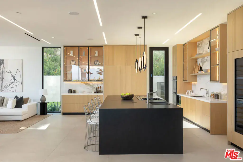 Extraordinary New Construction in Malibu. Located in the private, gated enclave of Malibu Colony Estates at the beginning of Malibu Rd, this stunning home offers breathtaking ocean views and contemporary design by renowned architect Douglas W. Burdge, AIA. One of just four homes in this prestigious community, this crowning jewel sits on approximately 1.3 acres with five bedrooms and ten bathrooms. A dramatic pivot entry door, framed by sculptural water features, sets the stage for the seamless indoor-outdoor flow of the home. Expansive glass walls, high ceilings, and premium materials like vein-cut travertine and rare Calcutta Gold stone enhance the elegant design. The grand living room features a striking floor-to-ceiling Blue Bibas marble fireplace, while the gourmet kitchen is equipped with top-of-the-line appliances and custom backlit cabinetry. Designed for effortless entertaining, the outdoor spaces include multiple lounge areas, a covered bar that seats six and an outdoor dining space. The private backyard also features an infinity pool and spa, a firepit with banquet-style seating, and a fenced lawn ideal for pets or play. The main level of the home includes a media area, a full bar with bifold doors to the patio, a spacious dining area, and an impressive office with stunning views. A guest suite with an en-suite bath completes this main level floor. Upstairs, the primary suite is a private retreat with two en-suite bathrooms, dual walk-in closets, and a wraparound patio with ocean and mountain views. Three additional en-suite bedrooms on the second level provide ample space for family and guests. The lower level is designed for entertainment and relaxation, featuring a home theater, game room, gym/bonus room with large bathroom for a possible sixth sleeping area, separate powder room, and laundry room. A three-car garage, ample guest onsite and street parking, and an elevator to all floors add to the home’s conveniences. Just minutes from Malibu’s top beaches and shopping, this estate offers a rare combination of luxury, privacy, and breathtaking surroundings. This is a rare coastal setting in Malibu centrally located just moments from Malibu’s shoreline and the vibrant heart of Malibu. Recently opened new shops and restraurants offer new energy and a great beach vibe. It is important to note that this home is connected to a central sewer system and all utilities on the cul-de-sac street are undergrounded.