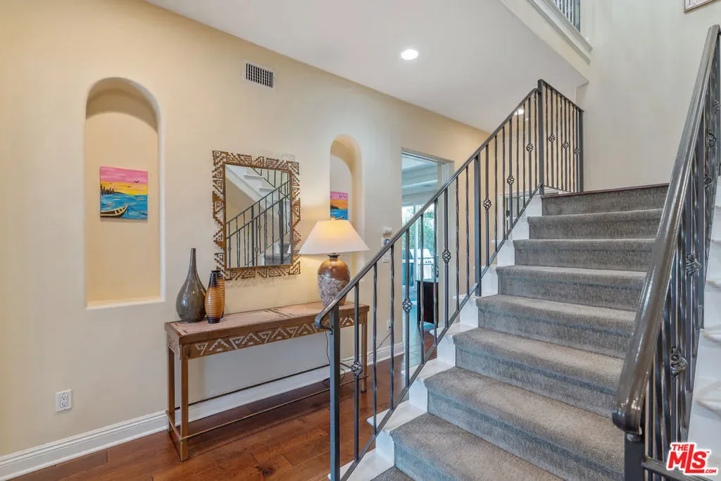 Welcome to coastal living in this beautifully upgraded 3-story townhome with ocean views, just minutes from Pepperdine and the beach. Ideal for those looking for space, privacy, and high-end amenities. The first floor offers a secure 2-car garage with overhead storage racks, built-in cabinetry, storage closets, and a whole-home Halo water filtration system. On the main level, enjoy an open-concept layout with soaring high ceilings and hardwood floors throughout. The formal living room features an elegant gas fireplace and balcony, while the dining room, breakfast bar, and chef’s kitchen with Viking appliances, center island, pantry, and plenty of prep space make entertaining effortless. A bonus room currently set up as an office with a king size Murphy bed and closets can function as a third bedroom, guest room, or creative studio. It opens to a serene, fully fenced grassy yard – private, low-maintenance, and perfect for relaxing, gardening, or entertaining with a built-in gas line ready for a grill or firepit. A stylish guest bathroom and statement chandelier complete this floor. Upstairs, the primary suite offers sweeping ocean views from every window – including the bedroom, bathroom, shower, and soaking tub – plus a cozy gas fireplace, private balcony, and massive walk-in closet. The second bedroom has its own bath and balcony with mountain views. Luxurious travertine tile in the bathrooms adds a timeless, spa-like touch. A sunlit upstairs office with skylight and an in-unit laundry room with a sink and ample storage complete the top floor. Dual-zone A/C and heating systems allow for independent climate control on each floor, ensuring personalized comfort year-round. Smart Nest thermostats let you control the temperature remotely, and the home is pre-wired for ADT security for added peace of mind. Flexible layout, ocean views, multiple outdoor spaces, and top-tier finishes make this home a standout. Located in the exclusive 22-unit gated community of Toscana, residents enjoy access to a clubhouse, fitness center, heated pool and spa, beautifully landscaped grounds, security, and controlled entry. A pedestrian and bike path provides convenient access to Malibu Country Mart, Surf Canyon, Cross Creek Ranch, Bluffs Park, Malibu beaches, and Pepperdine. Don’t miss your chance to live the Malibu lifestyle and unbeatable proximity to Malibu’s best amenities.