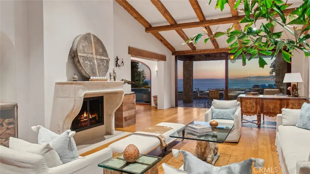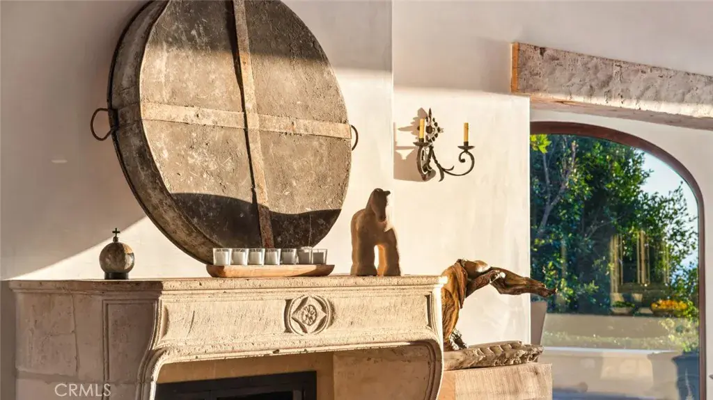 Discover unparalleled luxury in this exquisite French Country-style estate crafted by renowned builder Paul Brant Williger and featured in Luxe Magazine and two HBO productions. Nestled in a prestigious enclave (soon to be part of a gated, fire-wise community) this architectural gem blends breathtaking ocean views over Little Dume, with world-class amenities and impeccable craftsmanship. A stone-arched entryway invites you into a world of sophistication and timeless grandeur, as you are greeted with soaring vaulted ceilings, reclaimed French oak floors, and antique wood beams. The living room is anchored by a French antique wood-burning fireplace that seamlessly connects to the outdoors. The adjacent great room charms with a cozy firewood nook. The chef’s kitchen is a culinary masterpiece featuring a sprawling quartzite island, Caesarstone counters, and premium appliances (6-burner Wolf range, Wolf microwave, Miele dual dishwashers, Sub-Zero refrigeration to name a few). The formal dining room captivates with a fireplace, wood-beamed vaulted ceilings, French tiles, and sweeping coastline vistas. A nearby powder room impresses with French tile floors, floating sink imported from France, and bespoke lighting. The primary suite offers ocean and pool views, a vaulted ceiling, walk-in closets, and fireplace, and sliding doors to the lush backyard. Its spa-inspired ensuite boasts mosaic tile floors, stone counters, double vanity, walk-in shower with a marble bench, and an in-ground soaking tub framed by elegant French windows. A converted garage serves as a versatile office or gym, complete with skylights, and French doors opening to the garden. The laundry room includes built-in storage, washer and dryer, and a wine fridge. The backyard is a private paradise, showcasing panoramic ocean views, a rectangular pool with an integrated hot tub, a fire pit with a custom-built couch, and a tranquil waterfall. A covered outdoor dining area, equipped with infrared heaters and an exterior fireplace, ensures year-round enjoyment. Hand-finished French slip-resistant limestone elegantly paves the yard. Uncompromising craftsmanship defines this estate, from imported antique doors to a handmade Tuscan tile roof. Modern conveniences include ultra-sound-resistant glass windows and sliders, push-button automatic shades, a whole-home generator, three-zone climate control, and a comprehensive security system.