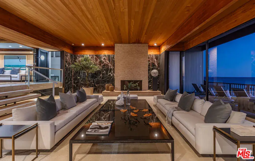 This architectural masterpiece, envisioned by renowned architect Ray Kappe, a pioneer of Southern California modernism and SCI-Arc founder exemplifies timeless coastal design. Located on Malibu Road’s exclusive Sandy Section, it enjoys prime beachfront positioning with dramatic natural rock formations and offshore reefs framing endless Pacific and coastline views.The open floor plan maximizes ocean vistas from every angle: gourmet kitchen, dining area, sitting spaces, and a striking double-height living room featuring floor-to-ceiling glass, central fireplace, sleek elevator, and expansive marble bar all flowing seamlessly to generous oceanfront decks for effortless indoor-outdoor living.The luxurious oceanfront primary suite spans the entire second-story width (street-entry level), offering a private sanctuary with its own marble bar, cozy fireplace, sitting area, and direct deck access to unobstructed sea panoramas. Off the primary suite is a convertible third bedroom with full bath and closet .Downstairs, a spacious, newly refreshed studio apartment provides independent quarters ideal for guests or family: new hardwood floors, full kitchen, bathroom, living room, bedroom, and versatile gym/family room.A rare opportunity to own a piece of Malibu heritage Kappe’s visionary fusion of clean lines, natural materials, and profound site integration creates an enduring, soulful beach retreat for those who value exceptional, thoughtful design.