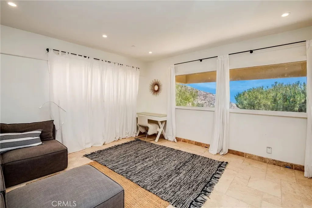 Inside, the bright open-concept layout showcases panoramic views, abundant natural light, and a sophisticated neutral palette. Gleaming solid Brazilian tiger wood floors and elegant travertine tile floors flow underfoot, enhanced by sleek recessed lighting.