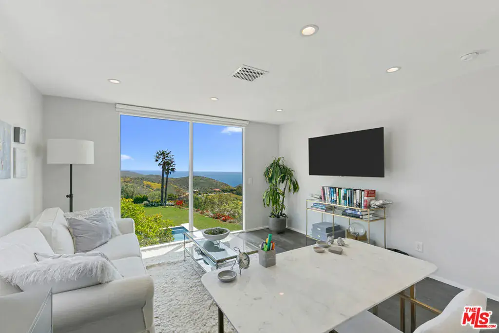 Spanish contemporary villa with a pool and 180-degree ocean views! Set behind gates in the coveted Malibu Pacifica community, this pristine coastal estate blends the romance of an Italian countryside estate with the laid-back luxury of Malibu living. Perched above the coastline on just over an acre, the home features meticulously landscaped grounds and commanding views that span from the mountains and Catalina Island to Point Dume and beyond. A romantic courtyard with a flowing fountain welcomes you into a sunlit entry, where breathtaking views unfold the moment you walk through the front door. Vaulted ceilings and oversized glass doors create a seamless connection between the expansive great room and the outdoor terraces perfect for effortless indoor-outdoor entertaining. The updated kitchen is outfitted with a large center island, high-end stainless steel appliances, custom cabinetry, a walk-in pantry, and an adjacent dining area with windows that gaze out to the Pacific and welcome in the ocean breeze. The grounds feel like your own private resort, featuring a massive heated pool and spa, a spacious flat lawn, multiple generous decks, fire pits, and seating areas perfect for taking in the unbeatable sunsets. The outdoor kitchen is fully equipped with a built-in BBQ, TV, and bar seating, while meandering pathways invite leisurely strolls through lush gardens, raised flower beds, and a thriving orchard with 30 fruit-producing trees. Tucked away in its own private wing, the primary suite is a true sanctuary with floor-to-ceiling corner windows, a balcony overlooking the pool and ocean, a large walk-in closet, and a separate office. The spa-like bath includes a soaking tub, rain shower, and dual vanities. Downstairs, three additional guest bedrooms offer space for family and friends – two share a wraparound balcony overlooking the grounds. Additional amenities include a cozy media room with barn doors, a full pool bath, a two-car garage, and a laundry room. The property feels worlds away, yet is just under 5 minutes from PCH and Latigo Beach. This is a rare opportunity to lease a fully furnished home with world-class views in one of Malibu’s most serene and best-kept secret communities.