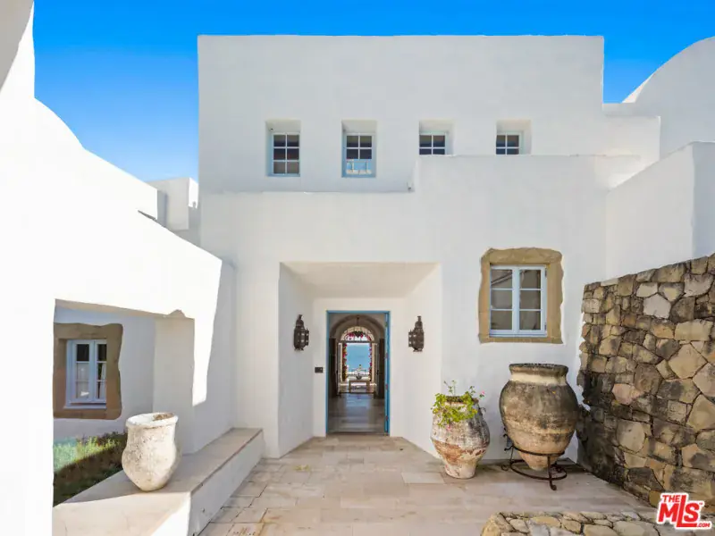 A once in a generation oceanfront estate located in Paradise Cove with its own private path to the beach. A winding private gated driveway leads to the main house through a grove of a hundred mature olive trees. Designed by Marc Appleton, the home is reminiscent of a home on the coast of Mykonos. With breathtaking scale, thick plaster walls and beautiful outdoor spaces, the home is designed into a cluster of separate volumes that resemble a small village. The compound sits on the edge of the sea with flat, domed, and vaulted roofs punctuated by tall chimneys. Featuring a stunning living room, media room/den, formal dining, gourmet kitchen, all overlooking unobstructed head-on views of the Pacific Ocean. The primary suite has a sitting room with fireplace and luxurious baths, closets, and its own private terrace. There are three additional bedrooms in the main house, all with wood burning fireplaces and rooms interconnected through breezeways and arbors. There is a beautiful guest house and additional staff quarters, a full regulation tennis court and resort-like swimming pool. Take a walk down your private pathway to the most stunning beach with its own beach bar on the sand. A truly once in a lifetime opportunity to acquire one of Paradise Cove’s most spectacular properties. Shown to prequalified clients only.