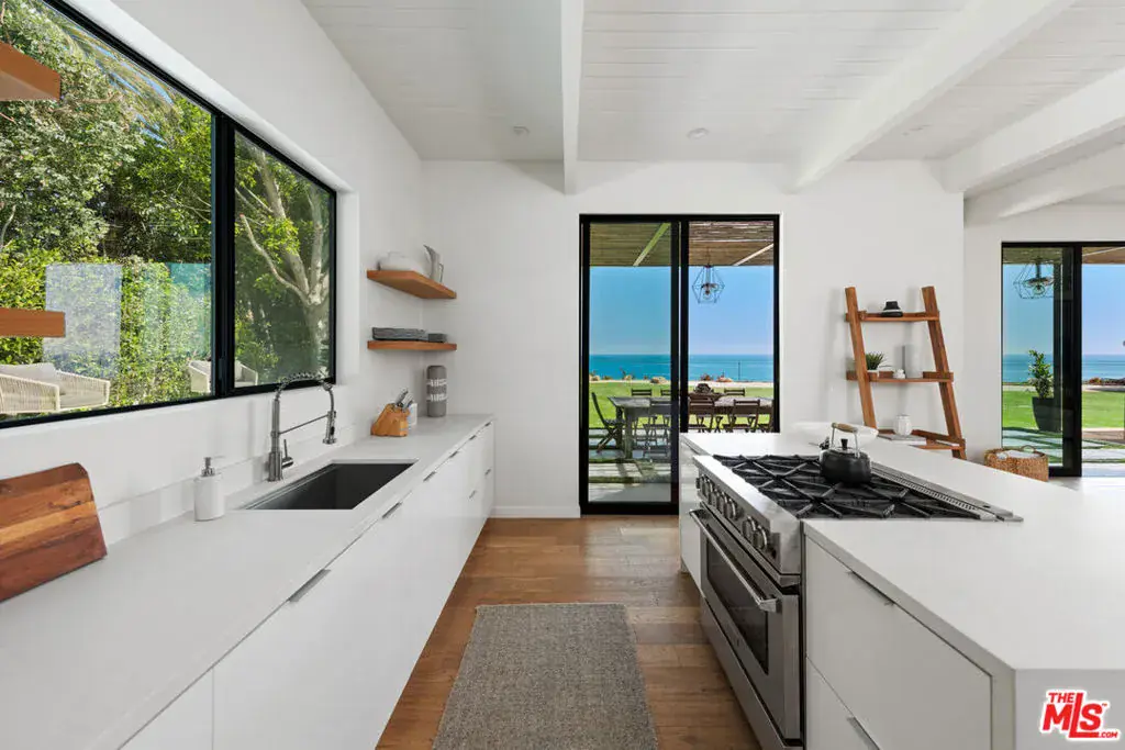 *Leased through May 15. Available Summer 2026* Home to world-class surfing, this reimagined modern villa provides seamless indoor-outdoor living with exotic patios amidst gardens, lawns, and ocean panoramas. Perched on a bluff above scenic Dume Cove with 110′ frontage, are a single-story main house and two-story guesthouse on over an acre. Ten-foot plank and beam ceilings, generous windows, gorgeous distressed oak floors, and custom-designed teak furniture are combined in a relaxed, sophisticated open-concept design. The courtyard entry of the main house features a covered dining area, ocean-view great room, and bright kitchen with an eat-in island. A wall of glass opens onto an outdoor living room/covered patio and huge bluff-top lawn for recreation and entertaining. The owner’s suite has a private patio with an outdoor living area. Completely separate, the guesthouse has a spacious covered patio, ground-floor bedroom, and upstairs living area with kitchen and glass accordion doors that open onto an ocean-view deck. The estate includes a new Airstream and Riviera 3 beach keys.