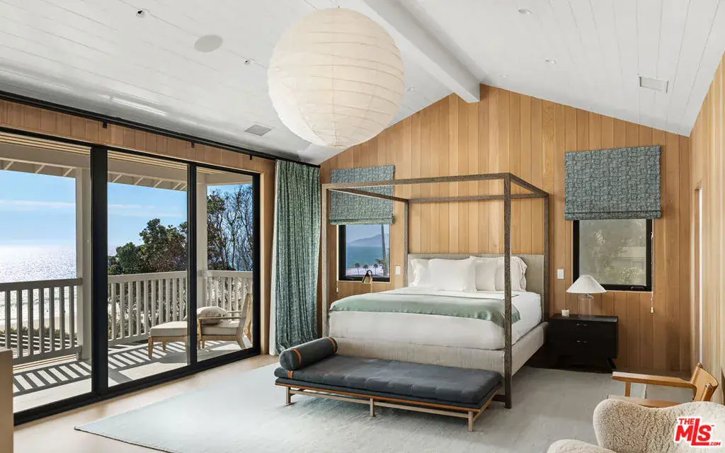 A contemporary coastal estate with panoramic ocean views, 29754 Baden Place offers refined design and true indoor-outdoor living. Set above the Pacific, the home features clean modern lines, hand-troweled plaster walls, expansive terraces, and every luxury amenity. The main level opens to a bright foyer and glass-lined living spaces overlooking the ocean. The dining room and fireside lounge are ideal for entertaining, while the library and bar lounge offer a private retreat. The chef’s kitchen includes Miele and Wolf appliances, marble counters, a large island, and a breakfast nook with ocean views. Upstairs, the primary suite features vaulted ceilings, a private oceanfront balcony, a sleek fireplace, and a spa-like bath with a soaking tub framed by an ocean-view window, dual stone vanities, a glass shower, generous closets, and a private sauna. Resort-style outdoor living includes multiple terraces, a pergola-covered lounge with fireplace, manicured gardens, a pool and spa, and a dedicated pickleball court- all oriented toward sweeping views of the Malibu coastline. From here, it’s common to watch dolphins and whales passing along the shore. Modern systems include a Crestron smart home platform, full-property security and cameras, and thoughtful materials throughout, including natural wood flooring, custom plaster finishes, and designer fixtures. A rare blend of privacy, architecture, and oceanfront perspective, 29754 Baden Place offers a serene seaside retreat designed for elevated Malibu living.