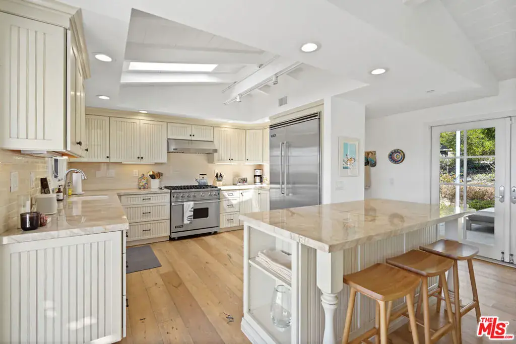 This stunning Malibu Park updated single-story ranch-style home embodies the epitome of beachside living, offering breathtaking ocean views from almost every room. The great room boasts high beamed ceilings, oak wood floors, and multiple French doors that lead to a spacious ocean view covered patio, along with a lush grassy front yard and a charming patio back yard. Relax in the living room by the rough-hewn stone fireplace, adding to the cozy coastal ambiance.The gourmet kitchen is a culinary haven, featuring large skylights, high-end appliances, polished Taj Mahal countertops, custom cabinets, and a convenient breakfast bar. The bright and open floor plan creates a seamless flow, perfect for hosting parties and indoor/outdoor entertaining. This home includes two-bedroom suites, one with an office, as well as two ocean-view bedrooms with bay windows and two bathrooms. The ocean view owner’s suite offers a serene retreat, with a raised entry, high ceilings, a spa-style bath, a custom closet, and French doors opening onto the front patio and the backyard. End the day playing ping pong, sitting in one of many outdoor seating areas, roll in the large grassy yard or sit in the cedar wood dry sauna. It’s the Ultimate beach Vibe. For added peace of mind, the property is gated and fenced for security. Fully furnished and available for monthly rentals, this home is ready to provide a luxurious coastal lifestyle. Don’t miss the opportunity to call this beachside oasis your own. Current Tenants in property until mid- December but can show with notice. (INCLUDES ALL UTILITIES, WEEKLY CLEANING, GARDENER)