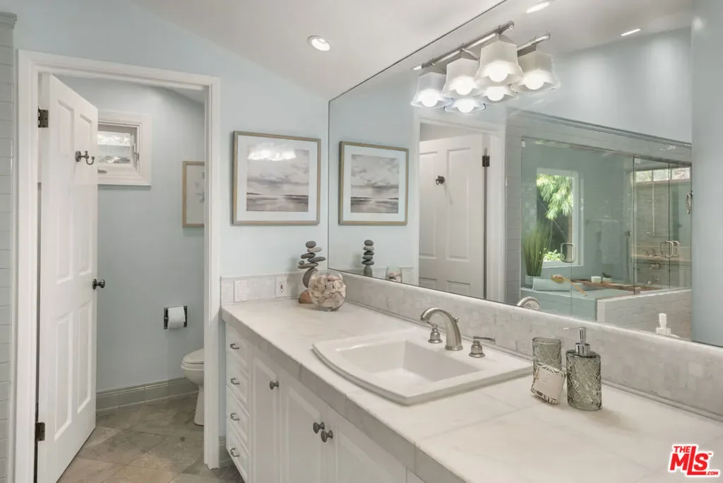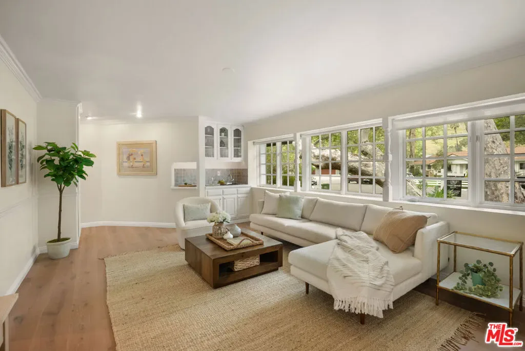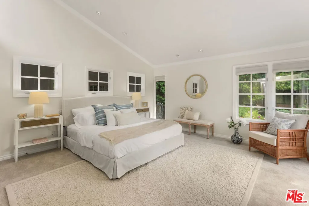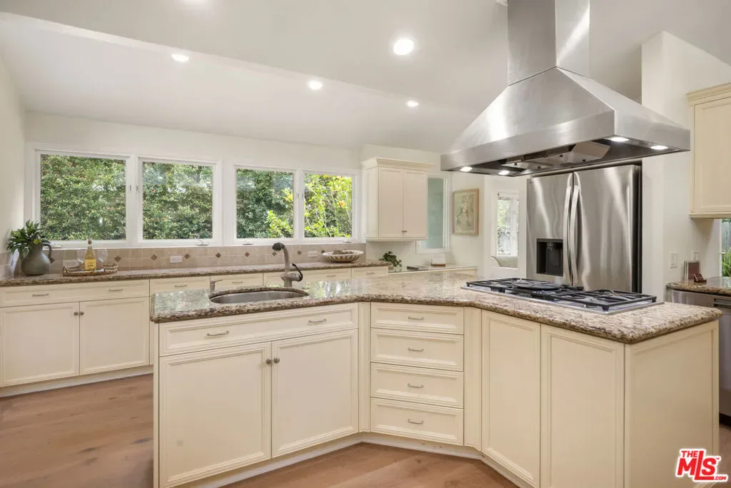 Located on a private cul-de-sac within the highly sought-after guard-gated community of Malibu West, this remodeled single-story ranch offers one of the largest floor plans in the neighborhood. Immaculate and thoughtfully updated, the home welcomes you through an entry into a living room featuring vaulted wood ceilings, a fireplace, and French doors that open to the serene backyard patio and gardens. A dining area with abundant natural light creates the perfect setting for gatherings both large and small. A spacious chef’s kitchen outfitted with granite countertops, a large center island with cooktop, and brand-new high-end appliances including an LG refrigerator/freezer, Kitchen-Aid double ovens, and a Miele dishwasher is adjacent to the cozy family room. Watch TV, enjoy a delicious breakfast, lunch or dinner while sitting by the fireplace. The expansive primary suite is a private retreat, showcasing vaulted ceilings, a gas fireplace, windows on all sides, French doors to the garden, a walk-in closet, and a beautifully appointed bathroom with dual sinks, soaking tub and dual shower. Three additional bedrooms provide ample flexibility, including a generous en-suite with garden views, which offers a bathroom with stone floors, a marble vanity and shower over the tub. Step outside to a sun-filled, fully fenced landscaped backyard featuring brick pathways and lush, flower-filled garden, perfect for dining, relaxing or entertaining. Residents of Malibu West enjoy exclusive access to the private Malibu West Swim Club on Broad Beach Road, offering a clubhouse, showers, parking, and direct entry to one of Malibu’s most beautiful sandy beaches. Additional community amenities include tennis and pickleball courts. Ideally located just minutes from Zuma Beach, the Trancas Country Market, local parks, and the newly rebuilt Malibu middle and high schools. This home offers the perfect blend of coastal living, comfort, and convenience. Easy to show. Contact the listing agent for a private tour.