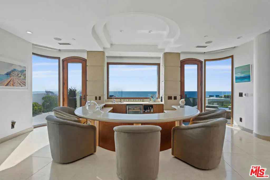 Nestled behind privacy gates of the prestigious street of Victoria Point located in Malibu’s famed Broad Beach area, this ocean-view masterpiece defines luxury coastal living. Every detail of this impeccably designed home exudes sophistication, from its fine finishes to its myriad of high-end features. The resort-style outdoor deck is an entertainer’s dream, boasting a panoramic ocean view, infinity pool and spa, and a built-in BBQ area, all framed by the breathtaking coastline. Inside, discover a carefully crafted floor plan that harmoniously blends form, flow and function. The stone flooring and distinctive fireplace surround showcase the sophistication of the home. Entertain or relax with family and friends in the impressive great room with soaring beamed ceilings, picture windows, cozy media room, semi-circular ocean view bar and dining area with stacked stone accent wall. Tucked away at the rear of the room, a temperature-controlled wine cellar awaits behind a secret door. The ocean view gourmet kitchen, a chef’s delight, features rich wood cabinetry and a large natural stone island with breakfast bar. The kitchen’s three ovens and two distinct prep areas, each with their own sink and dishwasher, invite you to unleash your culinary creativity. The elegant and tranquil ocean view primary bedroom engages your senses with wall to wall scenic windows, cozy fireplace, beamed ceilings, large relaxation patio and spa-inspired custom bath. The walk-in closet feels more like a luxurious boutique designed with meticulous attention to detail. The residence includes two additional en-suite bedrooms, one of which is ocean facing, that are perfect for visiting guests. An office with elegant built-ins provides the ultimate professional sanctuary. The property also boasts a fully finished two-car garage with built-ins for storage and an electric car charger. A stairway to Sea Level Drive from the pool area provides access to Lechuza beach. Sitting majestically on a bluff, the home commands stunning sunset views over Lechuza Beach and the iconic Malibu coastline. This rare offering presents an elegant and serene retreat that epitomizes coastal luxury by the beach. Victoria Point is one of Malibu’s best kept secrets.