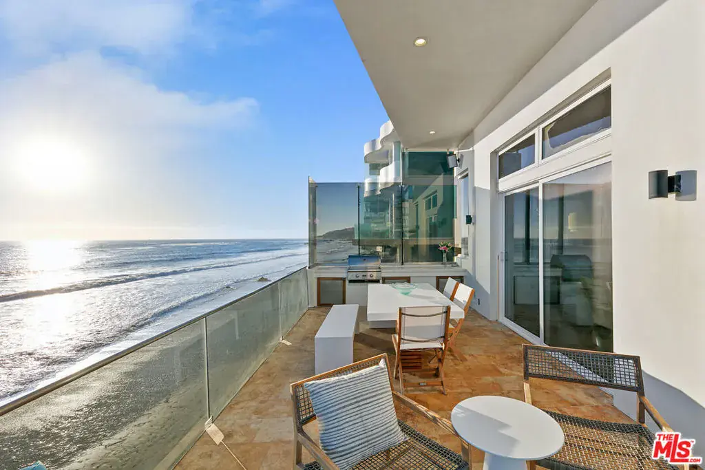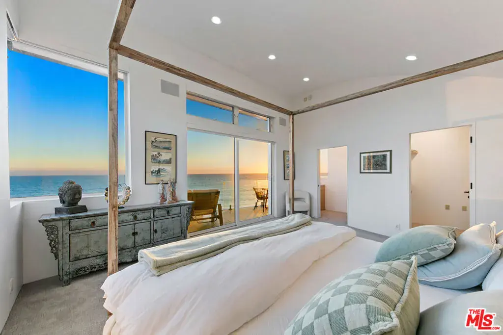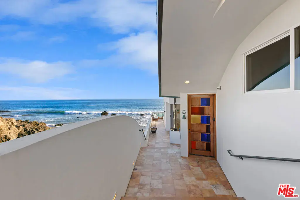 Welcome to this uniquely located seaside escape, a warmly crafted architectural residence situated in a private, gated enclave in the highly coveted Broad Beach neighborhood. This oceanfront retreat captures mesmerizing ocean views from nearly every room. Nestled on two premier beachfront parcels, the property features an impressive 60 feet of pristine ocean front. This custom home was designed 25 years ago by the esteemed Barsocchini & Associates for the current owner. This unique Malibu gem is currently being offered for long term lease. Located in the prestigious Sea Level Drive enclave, the home enjoys exceptional privacy and unobstructed views of dramatic rock formations and twinkling city lights, thanks to its prime position between two development-restricted lots. Architectural highlights include a distinctive Wave Motif copper-clad roof, artisanal art glass windows, bespoke iron railings, and inviting stone bathrooms. The welcoming interiors are characterized by soaring ceilings, expansive picture windows that bathe the rooms in natural light, and charming finishes, creating a harmonious blend of comfort and style. The bright living and dining areas on the main floor open onto a spacious wraparound deck, ideal for al fresco dining, barbecues, and relaxation by the sea. The gourmet kitchen, with its vaulted ceiling, custom cabinetry, bar seating, breakfast nook is a chef’s delight. A stairway from the kitchen leads to an outdoor shower and the sandy beach. The main level also includes a bedroom and a full bath, while the lower level features a vast media/recreation room with a fireplace, laundry room, and bath. The upper floor houses three en-suite bedrooms, including the breathtaking ocean-view primary suite. This retreat features two walk-in closets, extensive built-ins, an oceanfront balcony, a spa-inspired bathroom with ocean views. Situated down the hallway lies a stylish library lounge, ideal for zoom calls, reading and relaxing. The adjacent lot provides a terraced outdoor sanctuary for entertaining and soaking in the sound of the breaking surf. The striking rock formations to the east are a source of constant visual delight. A surfer’s hideaway for locals is a paddle away. The property includes a two-car garage and additional parking for four vehicles in the driveway. With its superbly executed design and one of a kind beachfront location, this residence invites you, your family and friends to indulge and enjoy the luxury of the Malibu beach lifestyle.