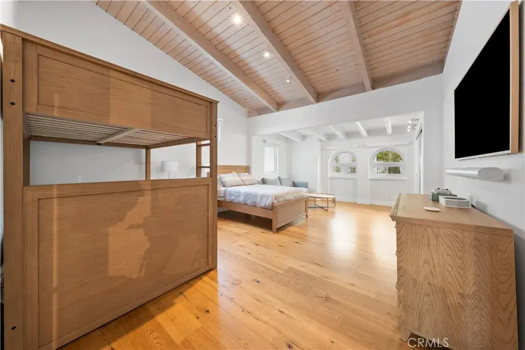 The master suite is a true sanctuary, offering unmatched views of the coastline. Wake up to the sight of the sun rising over the ocean and fall asleep to the sound of the waves. Sliding glass doors open to a private ocean-view deck, creating a seamless connection to the outdoors. The luxurious en-suite bathroom features a soaking tub and a steam shower, perfect for unwinding while gazing out at the Pacific.
