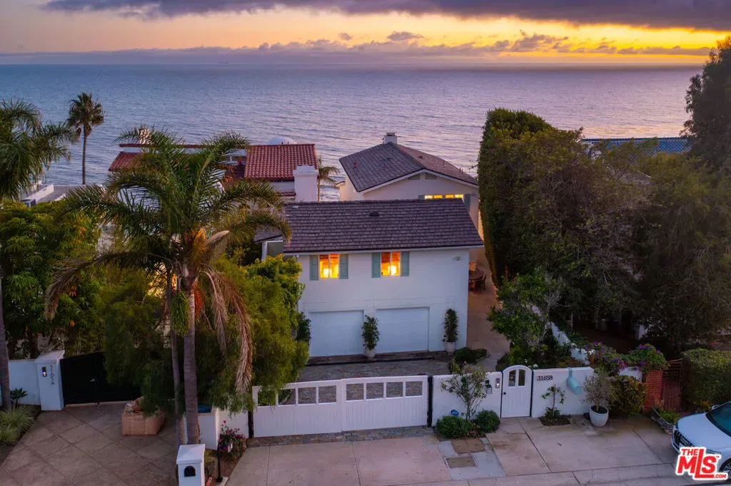 Perched gracefully above the golden sands of Sea Level Beach, this luminous three-story Cape Cod sanctuary offers more than a home. It offers a living dialogue with the Pacific. From the first step through its blooming courtyard garden, a sense of serenity envelops you. Light dances through every room, and the rhythm of the ocean becomes your daily companion.The main level opens into a radiant living space where vaulted wood-beam ceilings rise above an ocean-facing hearth. Here, expansive glass doors dissolve the boundary between indoors and sky, leading to a generous view deck where sunset becomes ceremony. The kitchen, intimate yet refined, features marble surfaces, premier appliances, and a sunlit breakfast nook that invites slow mornings and quiet reflection.Ascend to the upper level, where the owner’s suite becomes a sanctuary of stillness. With panoramic ocean views that greet you at dawn and soothe you at dusk, this retreat includes a spa-inspired bath with a sculptural soaking tub, a walk-in shower, and a spacious dressing room. An additional en-suite bedroom on this level offers comfort and privacy for loved ones.The lower level unfolds into a versatile great roombathed in light and framed by the sea. Whether envisioned as a media lounge, creative studio, or children’s haven, it opens to a second expansive deck with a spa tub, inviting moments of deep rest and ocean communion.A rare jewel of this estate is the detached guesthousean autonomous retreat with its own en-suite bedroom. Whether for cherished guests, creative solitude, or multi-generational living, it offers sanctuary and spaciousness in equal measure.Every inch of this home is a dialogue between elegance and ease, between structure and soul. It is not simply a residenceit is a vessel for presence, a place where modern refinement meets the eternal rhythm of the sea.Here, on the sacred edge of Malibu’s coastline, luxury becomes language, and nature becomes home.