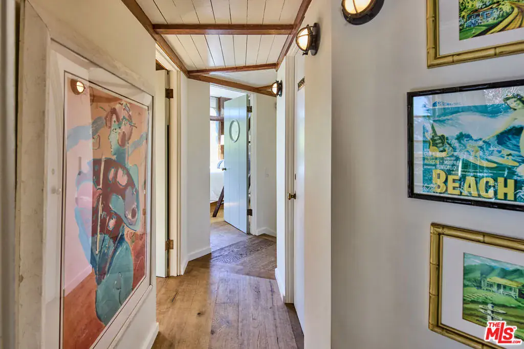 Where Malibu’s coastal character meets surf-inspired architecture, welcome to “The Octagon,” a distinctive post-and-beam residence crafted by water lovers and designed to honor light, air, and a true connection to the sea. Wrapped in windows and filled with authentic old-school Malibu charm, this one-of-a-kind home reflects the spirit of a bygone era with an architectural edge. Featuring 4 bedrooms, 3 bathrooms, and versatile lofts, the floor plan offers exceptional flexibility for living, working, hosting, or creative use. The thoughtfully redesigned kitchen features Calcutta marble surfaces, brass accents, and custom craftsmanship, creating a beautifully functional centerpiece.The main living area is anchored by a welcoming fireplace, and floor-to-ceiling doors provide a seamless indooroutdoor flow, perfect for entertaining or expanding your daily living space. The primary suite includes a steam shower for a spa-like retreat, while subtle peek-a-boo ocean views enhance the home’s coastal ambiance. A separate converted bonus suite with its own bathroom and kitchenette area adds valuable flexibility for guests or extended living. Multiple deck areas surround the home, offering opportunities to enjoy the outdoors from different vantage points, complemented by an outdoor shower ideal for beachside living. The property also includes a fully owned solar system, supported by two Tesla backup batteries and a Tesla charging station, providing energy efficiency and self-powered reliability. Located within a private seaside gated enclave of approximately twelve homes, the residence sits along a picturesque tree-lined lane that leads directly to Lechuza Beach, one of Malibu’s most cherished hideaways. The community benefits from a seasonal private security patrol schedule, offering added peace of mind. Just minutes from the retail, dining, and conveniences of Trancas Country Market, as well as the newly constructed Malibu High School and Malibu Middle School, this home presents a rare opportunity to live by the sea in one of Malibu’s most intimate and authentic enclaves.
