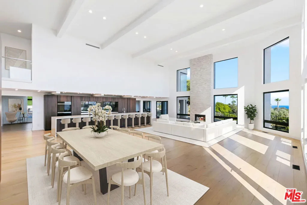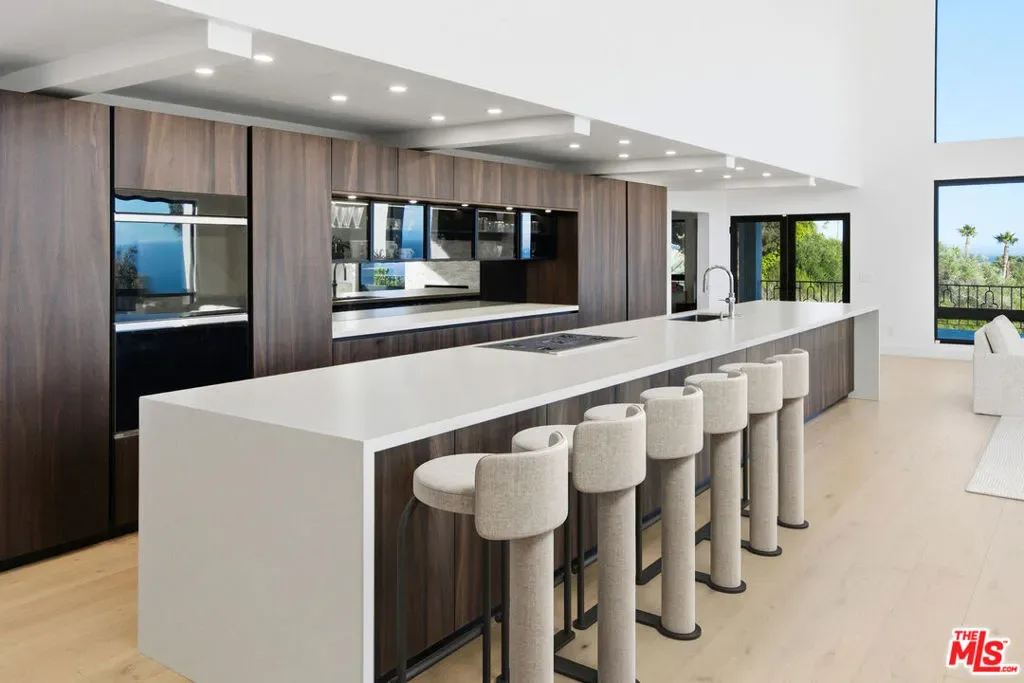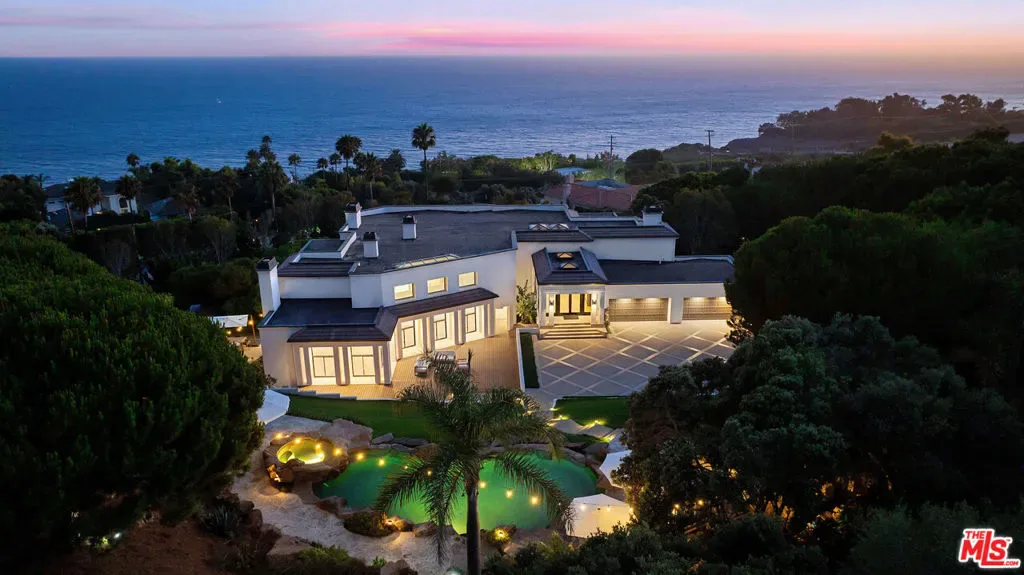 Set behind gates on five private acres overlooking Malibu’s Encinal Bluffs, this substantial coastal estate offers a rare combination of land, privacy, and ocean orientation just moments from the Pacific. Properties of this scale with established grounds and panoramic views are increasingly difficult to find this close to the coastline. A long private drive leads to more than 10,000 square feet under roof, where soaring cathedral ceilings and walls of glass frame sweeping ocean vistas from nearly every room. Designed for both comfortable daily living and large-scale gatherings, the residence includes six bedrooms and five full plus two half bathrooms, including two ocean-view primary suites. The expansive open-concept kitchen connects seamlessly to multiple living and dining areas centered around a dramatic great room. An approximately 2,000-square-foot finished lower level provides flexible space for a private office, wine storage, gym, media room, or additional storage, along with direct drive-in access ideal for collectors, hobbyists, or secure vehicle storage. Outdoor amenities include multiple terraces positioned for sunset views, a resort-style pool and spa, generous lawns, and a mature orchard that enhances the property’s park-like character. Garage parking for up to nine vehicles, together with a large motor court accommodating additional cars, underscores the estate’s scale and versatility. Fully gated and approached by a long private drive, the property offers a high degree of privacy and security while remaining close to beaches, shopping, and central Malibu amenities. The combination of acreage, established landscaping, panoramic ocean views, and substantial living space makes this a rare offering for those seeking a true Malibu estate with both privacy and proximity to the ocean.