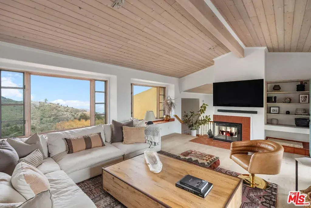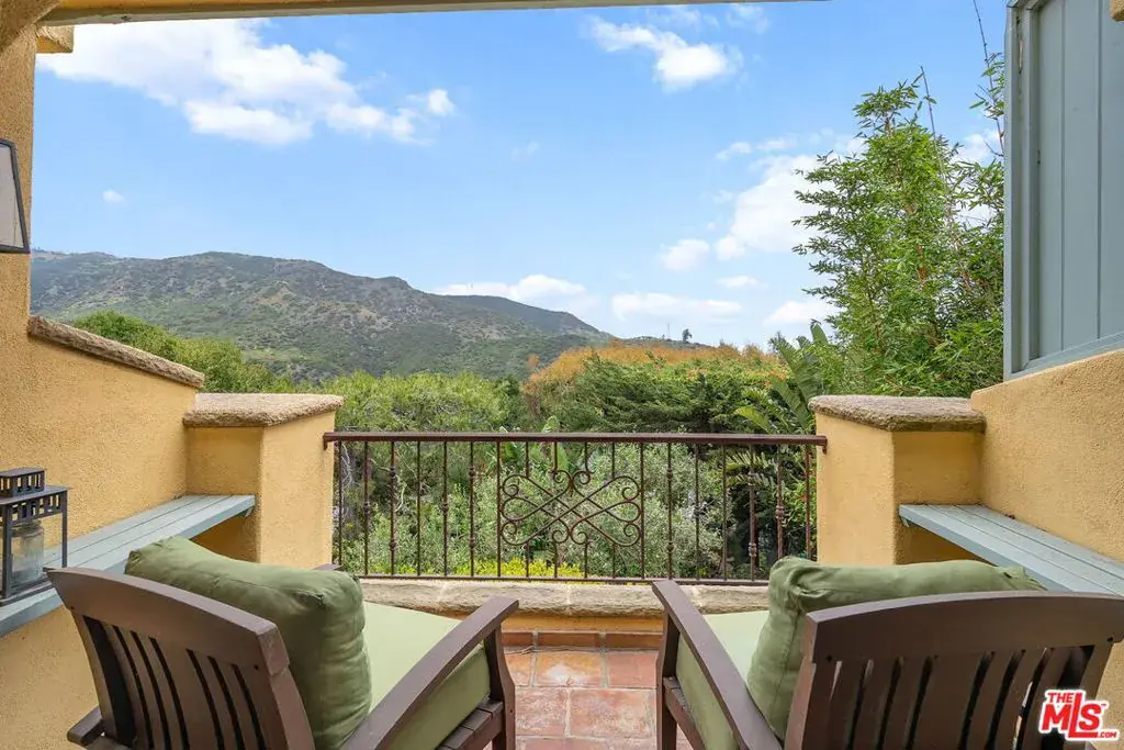 Perched in Latigo Canyon with rare east- and west-facing ocean views, this Provenal-inspired retreat captures the full arc of the sun from peaceful morning light to dramatic Malibu sunsets. Every detail of this home reflects timeless craftsmanship and understated elegance, from reclaimed French fire brick and hand-carved Santa Barbara stone to wide-plank French oak floors throughout. Three bedrooms features their own en-suite baths, creating a private and luxurious experience for family and guests. A versatile bonus room offers the perfect space for a nursery, home office, or studio. At the heart of the home, a double-sided fireplace anchors an expansive den that flows seamlessly onto a west-facing ocean view terrace ideal for sunset entertaining or quiet evenings under the sky. The front courtyard invites long lunches and al fresco dinners, while the beautifully landscaped backyard with its custom spa, outdoor shower, stone fireplace, and terraced fruit trees faces east, bathed in golden morning light and framed by serene canyon and ocean views. Effortlessly blending the soul of the French countryside with the ease of coastal California living, this home is a rare Malibu offering authentic, intimate, and designed for a life well-lived.