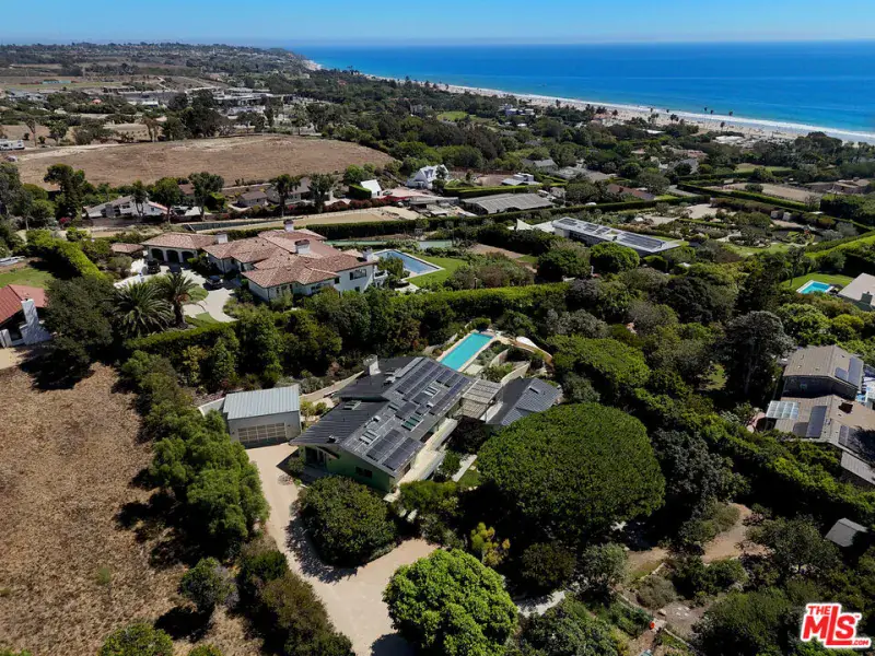 Malibu Retreat on Philip Avenue. Tucked away on approximately one acre with ocean views, this 5,966-square-foot estate combines modern sustainability with timeless California living. Designed for comfort and functionality, the property features a main residence and guest house powered by an advanced solar system with Tesla battery backups, ensuring peace of mind and continuous power, even during extended outages. Interior Highlights- the main level showcases walnut floors, while the lower level is finished in limestone. Expansive bedrooms include large walk-in closets and spa-inspired bathrooms with dual sinks, jacuzzi tubs, and private shower rooms. Automated Lutron lighting, programmable shades, and radiant heating provide both luxury and efficiency throughout. The chef’s kitchen is fully equipped with a six-burner Viking gas cooktop, a wok burner, a 30″ Viking electric oven, dual dishwashers, multiple refrigerators, and freezers, making it an entertainer’s dream. Adjacent, the living spaces feature skylights, electric shades, and seamless indoor-outdoor flow. Exterior & Grounds – Outdoors, a 52-foot heated pool with an electric cover invites year-round enjoyment, complemented by a large Viking BBQ, heated patios, and landscaped vegetable gardens with drip irrigation. A standing seam roof, integrated alarm system, and automated exterior lighting offer durability and security. Guest House – The detached guest house includes its own solar source, electric water heater, radiant heating, and ceiling fans, ensuring complete independence and comfort. Dual laundry rooms, including a garage setup that operates during outages. Custom details include energy-efficient standing seam roofing and a Lutron lighting system. Security lighting is activated by bedside and entryway controls. This Malibu retreat balances modern sustainability with elegant living, making it an ideal sanctuary and just a quick walk to the beach.