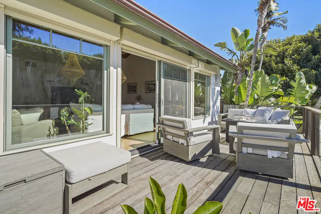Gated and remodeled home on just shy of an acre, zoned equestrian with horse stalls and tack room. Gorgeous property with stunning ocean and sunset views, pool, spa and separate guesthouse. An ideal Malibu location, just a short distance to the world acclaimed, wide-open, sandy beaches of Zuma; with excellent surfing for all levels. Play volleyball and use the boardwalk for walking, jogging or biking. Nearby shopping, restaurants, banking, schools, amazing hiking, biking and horse trails to explore for miles. Main home is approx. 3,613 square feet with 5 bedrooms, plus maid’s room with separate access. Additional detached guest home has its own entrance (and parking space) with 7th bedroom and approx. 558 square feet, totaling approx. 4,171 square feet in living space overall. The primary suite is located separately on the 2nd floor, with ocean and mountain views, three walk in closets and romantic sitting room with wood burning fireplace. Upon entering the home you are greeted by an enormous great room with high ceilings with exposed beams, wood burning fireplace and French doors to a balcony. Recently remodeled kitchen with outdoor breakfast area. Impressive library with loft and built-in shelves. French doors lead out from the family room and wet bar to the beautiful backyard. Enjoy several gardens with sitting areas and a built-in barbecue. Towards the back of the property is the horse facility with stalls, tack room and open space for horses to play.