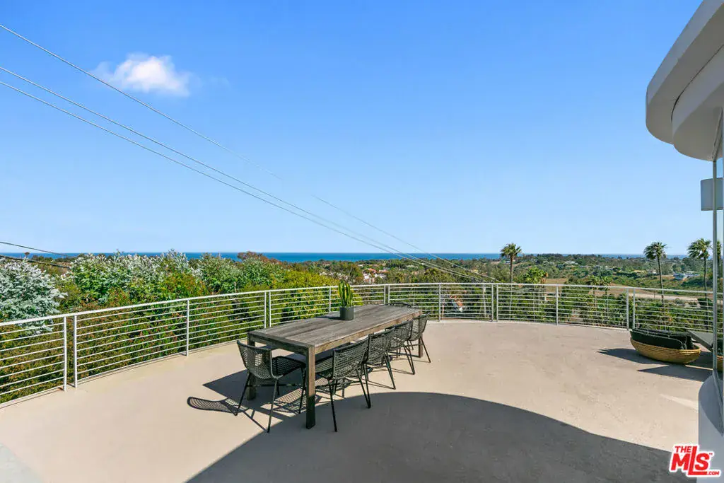 A stunning architectural masterpiece where privacy and creativity converge in the exclusive gated enclave of Cavalleri. Fully renovated with impeccable designer finishes, this home features floor-to-ceiling glass walls, White Oak floors, and a central spiral staircase. Enjoy panoramic ocean and mountain views from multiple decks, including a newly redone rooftop deck offering 360-degree vistas, an indoor wet bar, a built-in BBQ, and a fire pit. The entry level is an entertainer’s dream with an open-concept layout, featuring multiple seating areas, serene coastal views, and stacking glass doors that lead onto a wrap-around deck. The dining area flows seamlessly into the chef’s kitchen, boasting Miele appliances, Labradorite stone countertops, a gas range with dual ovens, and a large island with breakfast bar seating. The luxurious primary suite overlooks the sparkling Pacific and includes a comfortable sitting area, motorized drop-down television, spa-like bath with dual rain steam shower, free-standing porcelain soaking tub, and direct access to a sun-soaked patio. Two additional en-suite bedrooms and a detached guest suite provide ample space for family and guests. Outside, a grassy lawn wraps around the home, and there are plans available for a future pool. Additional features include a full-home Sonos system, remote-controlled blackout shades, a laundry room, and a 2-car garage. All set within a private, gated community on a quiet cul-de-sac with convenient trail access and a central location near local markets, schools, restaurants, pristine beaches, and more. Experience Malibu at its finest, where breathtaking beauty and refined coastal elegance come together in one remarkable home.