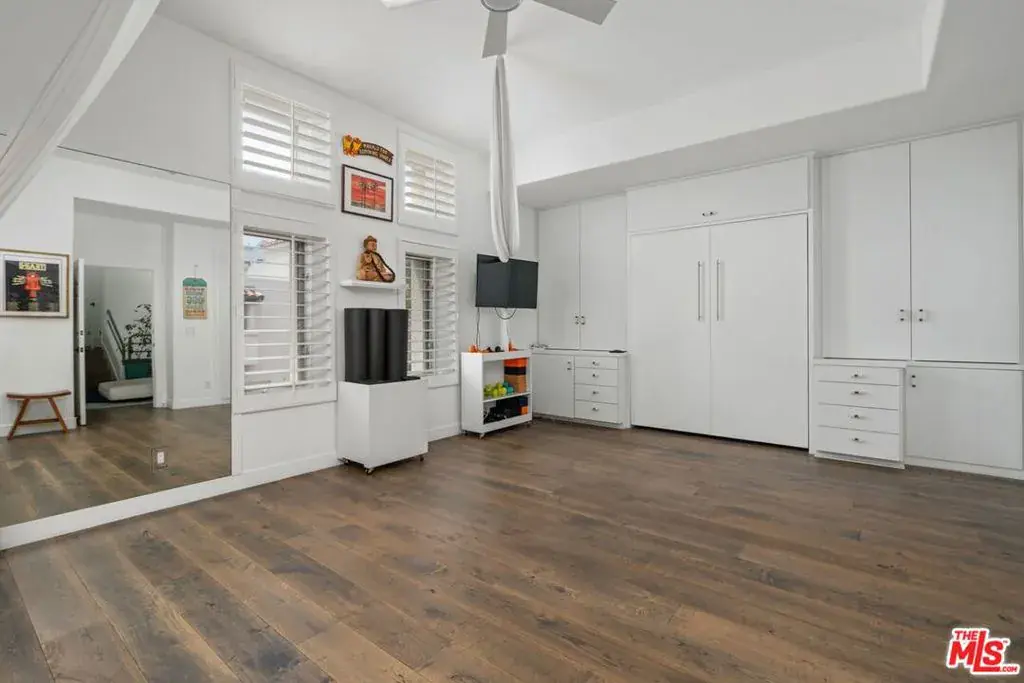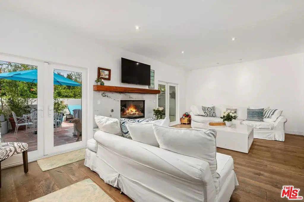 Portico At Malibu designer townhome with Viking appliances, Carrarra marble counters, custom cabinets, hardwood floors. Living area is spacious and open style with fireplace, and doors opening to private patio with gardens and fountain. Primary bedroom has high ceilings, spacious bedroom & bath with custom tub, separate shower and walk-in closet. Second ensuite bedroom doubles as a yoga studio with built in custom cabinets, murphy bed, high ceilings and loads of natural light. 3rd bedroom has high ceilings with remote control skylights and moisture sensors. Many skylights throughout allow for natural light all day. Spacious 2 car garage with cabinets and additional refrigerators. Beautiful community salt water pool and barbeque lounge area. Gated complex of only 21 townhomes.