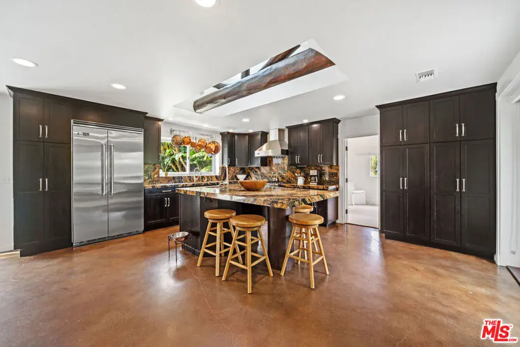 Set behind gates on one of Point Dume’s most desirable streets, this private coastal refuge blends relaxed California living with a refined, resort-style atmosphere. Surrounded by lush landscaping and tall palms, the single-story main residence opens to expansive sun-filled spaces, warm wood accents, and seamless indoor-outdoor flow. The heart of the home is an impressive chef’s kitchen appointed with richly toned cabinetry, striking natural-stone counters, professional-grade Viking appliances, and an oversized center island designed for cooking, gathering, and entertaining. The adjoining dining and living areas feature dramatic exposed beams, skylights, and large glass doors that frame views of the tropical backyard. The serene bedroom suites offer peaceful garden outlooks, vaulted wood ceilings, generous closet space, and beautifully remodeled bathrooms finished with stone surfaces, spacious showers, and a freestanding soaking tub. An additional flexible room functions well as an office or cozy lounge. A powder room with direct access to the yard adds convenience for poolside living. Outside, the property becomes a private retreat with a large pool, expansive patio areas for dining and lounging, vibrant greenery, and an outdoor bathing pavilion with a sculptural clawfoot tub. Mature hedges provide exceptional privacy throughout. A detached structure accommodates use as a gym along with abundant storage, while the main driveway provides generous parking. Located moments from Point Dume’s shops, schools, and world-renowned beaches, this offering presents an exceptional opportunity to lease a beautifully maintained home in one of Malibu’s most coveted neighborhoods. Beach key to Riviera II is included, providing access to one of Malibu’s most treasured sandy stretches. *Guest house not included in lease*