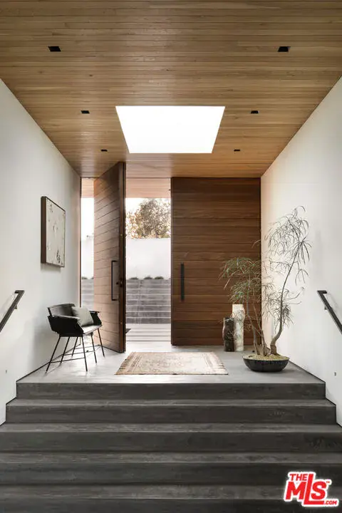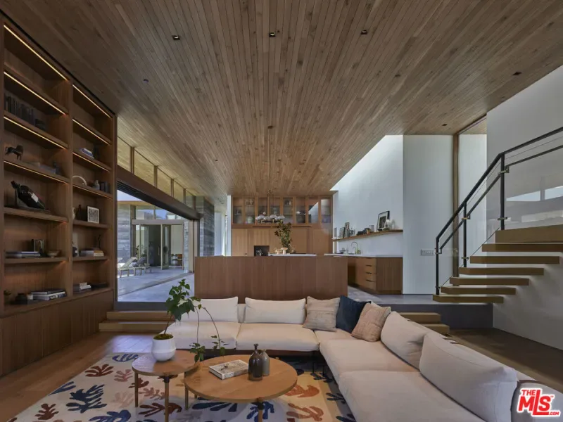 A new contemporary, this Point Dume residence designed by Standard Architecture is unlike any other. At the end of a double-gated drive on over 1.1 acres, the home is nestled into a gentle slope of wildflowers with a backyard stream that flows year-round to the beach. High oak ceilings, radiant-heated concrete, and oak floors. Walls of teak & glass vanish into board-formed concrete pockets to create a truly indoor/outdoor experience. The entry floats over a koi pond to a skylit foyer. Formal dining & living rooms share a floor-to-ceiling fireplace. A skylight washes the vast kitchen with soft daylight. Butler/caterer pantry for entertaining, built-in dinette for casual dining. Family room with a wood-burning fireplace & intimate patio for outdoor dining. Infinity pool & spa. Owners suite includes a fireplace, French doors to the garden & dual walk-in closets. Freestanding bathtub, indoor/outdoor shower, dual water closets & a private Japanese garden. Office with private courtyard on main level, plus three en-suite bedrooms overlooking a private front yard. Yoga studio, bonus room / sauna, wine cellar, and bedroom with en-suite on lower level. Separate guest house with kitchen and bath is privately accessible from the backyard. Key access to Little Dume beach via Riviera II. Separate trail to beach directly out backyard along the stream.
