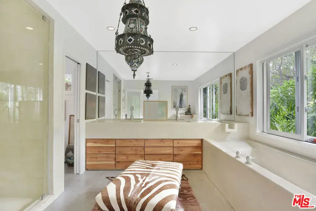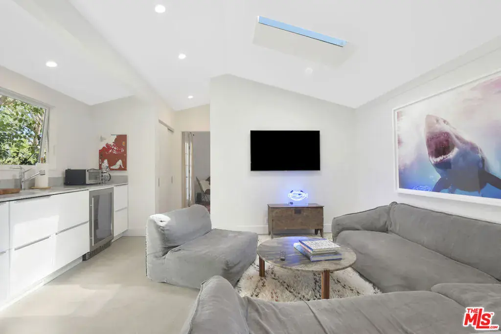 This sensational Point Dume house is set on more than an acre of gated and landscaped privacy. Complete with beach rights, it is a home created for comfortable indoor/outdoor living and sophisticated entertaining. The home is detailed with high wood-beamed ceilings, Fleetwood glass doors and cement floors. In addition to a beautiful living room, the home has a media room, family room with fireplace, a dining area, and a chef’s kitchen equipped with a Viking stove and oversized Sub Zero refrigerator and freezer. Large 12-foot sliding doors open the house to the front and back yards. There are three bedrooms and four bathrooms, plus an office/bonus room, with a fireplace, that could be a fourth bedroom. The owner’s suite has a fireplace, a wall of glass doors opening to the back patio, and a luxurious garden-view bath with a huge shower, tub, and double sinks. The exquisite grounds are tranquil and harmonious, with a pool and spa, dining area, fire pit, double barbecue island, multiple recreation and seating areas among beautiful trees and plantings, and a detached one bedroom guest house. The home is also equipped with modern updates such as Sonos speakers, Generac auxiliary power, NEST heating and cooling, and security entry. This exceptional property is just a short distance to Riviera 2 private beach access. Available July 1st, 2025.