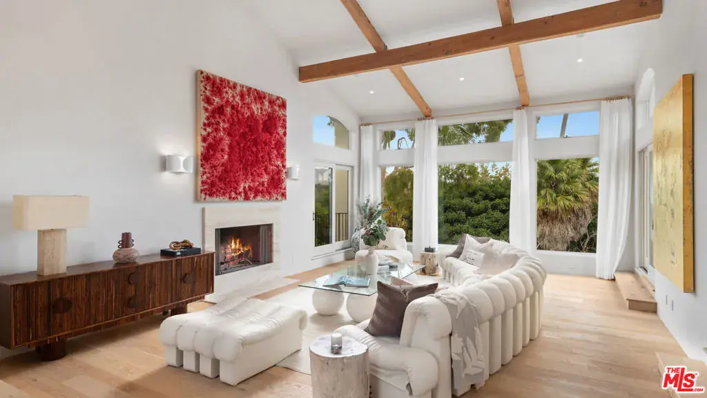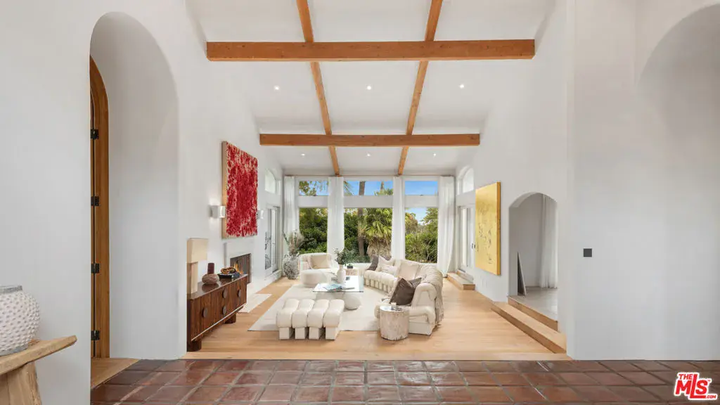 Nestled on one of Malibu’s most prestigious streets, this gated estate offers an extraordinary blend of timeless Spanish architecture, refined interiors, and a resort-style outdoor lifestyle. Set on expansive grounds with a full-size tennis court, pool, and mature landscaping, the residence provides the rare opportunity to experience both elegance and comfort in one of Southern California’s most sought-after coastal enclaves.The home is introduced by a broad stone motor court, lush gardens, and the classic silhouette of a Spanish-style villa with rustic clay tile rooflines. A graceful entryway opens to interiors that immediately set the tone: airy, light-filled, and designed for seamless indooroutdoor living. Inside, soaring vaulted ceilings with exposed wood beams pair with wide-plank oak floors and crisp white walls to create an atmosphere of modern coastal elegance. The formal living room features a dramatic fireplace, walls of glass that frame garden views, and an elegant wet bar with stone counters, perfect for entertaining. Multiple living and family rooms are each anchored by fireplaces and framed by oversized windows or French doors that open to terraces and gardens. Thoughtful details, from arched passageways to custom built-ins and rich wood accents, balance sophistication with a natural sense of ease.At the heart of the home is a chef’s kitchen, outfitted with custom wood cabinetry, stone countertops, and a suite of professional-grade appliances including a La Canche range and Gaggenau appliances throughout. A large center island anchors the space, while vaulted ceilings and walls of glass flood the room with natural light. Direct access to the dining terrace makes al fresco meals effortless, and an adjacent casual lounge with fireplace provides the perfect spot to gather and unwind.The primary suite serves as a serene retreat, featuring vaulted ceilings, a fireplace, and expansive windows overlooking lush greenery. Its spa-inspired bathroom includes a freestanding soaking tub, an oversized glass shower, dual vanities, and a soothing neutral palette, while a custom walk-in closet offers generous storage with bespoke cabinetry. Additional bedroom suites open onto private balconies or garden terraces, offering comfort and privacy for family and guests alike.Designed for a true California lifestyle, the estate boasts multiple terraces, shaded loggias, and lounging areas that embrace Malibu’s indooroutdoor flow. A grand staircase leads down to the expansive pool terrace, where a sparkling pool is surrounded by red-brick patios, framed by mature palms and verdant landscaping. A shaded cabana with lounge seating, television, and dining space makes the area ideal for entertaining day or night. Beyond the pool lies a rare amenity for Malibu, a full-size tennis court complete with lighting and additional lawn areas, creating a private playground for recreation and gatherings.Modern comforts include a premier Savant audio system with smart-home integration, a whole-house water filtration system, and thoughtful upgrades throughout.Privately tucked away yet only moments from Malibu’s iconic beaches, shops, and dining, 7046 Grasswood Avenue is more than a residence, it is a lifestyle estate. From timeless architectural character to state-of-the-art amenities, this property offers the perfect blend of sophistication, comfort, and relaxed coastal living.
