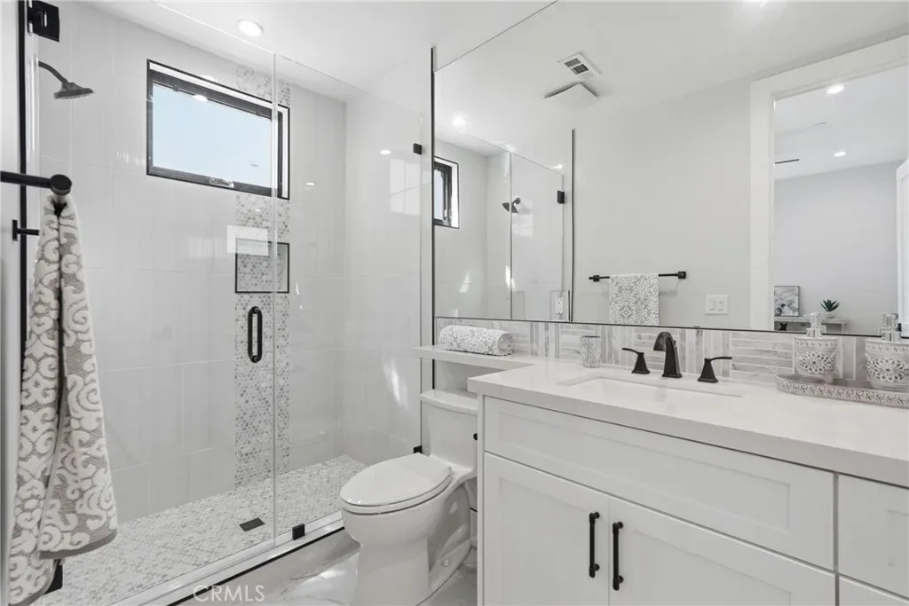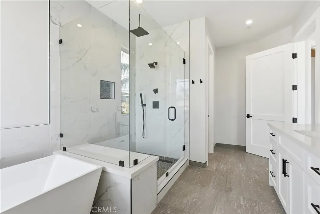 This 5 bedroom, 5 1/2 bath new construction home is located on a prime street in the Manhattan Beach Mira Costa area. This property has a large south facing backyard with plenty of room for kids, pets or a future pool. Open floor plan with large commercial kitchen perfect for a large family or entertaining. White oak hardwood throughout. Large laundry room. Large master suite with extraordinary walk in master closet. Don’t miss this opportunity!