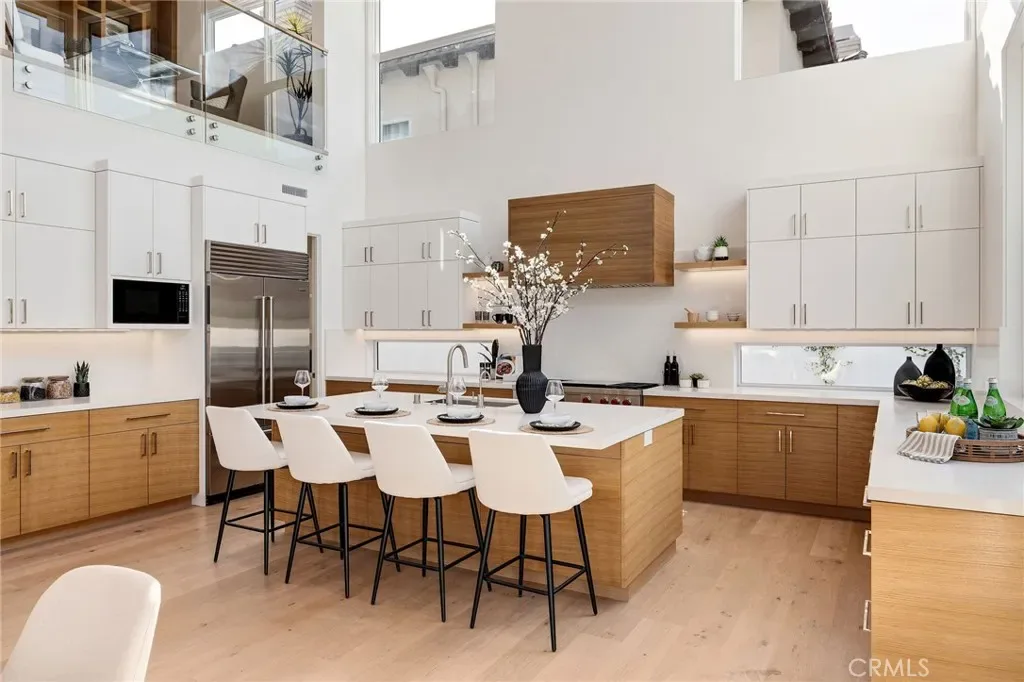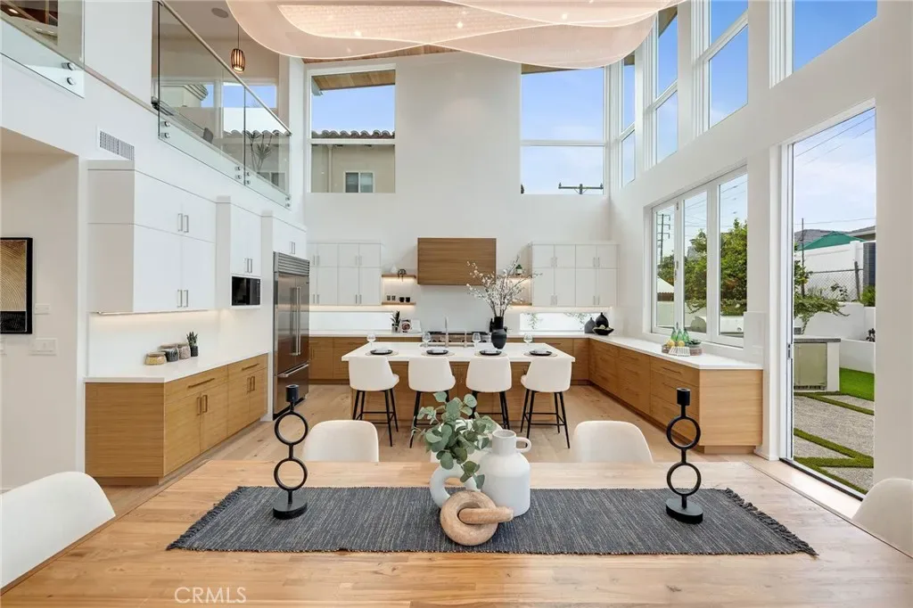 Step into elevated living with this Brand-New, CUSTOM “Modern Mid-Century” masterpiece, thoughtfully designed and expertly built by Sean Icaza Construction. Combining timeless architectural elegance with modern functionality, this four-bedroom residence—plus a custom-designed loft office—offers the perfect fusion of form and lifestyle flexibility. Inside, 28-foot ceilings and dramatic floor-to-ceiling glass panels flood the open-concept main room and loft with natural light, creating a stunning connection to the private, entertainer’s backyard. Seamless indoor/outdoor flow is achieved with 12 foot La Cantina bifold door system and bar counter window, perfect for hosting or relaxing. The kitchen is a true showpiece, featuring handcrafted White Oak cabinets (not veneer), Thermador appliances, a walk-in pantry wired for additional appliances, and custom natural stone finishes. Custom Kayu solid Brazilian hardwood accents continue throughout the home, including ceilings, eaves, and fencing—tying the indoor and outdoor spaces together with warmth and character. Every detail speaks to quality, Hand-finished White Oak flooring (not engineered). Custom cabinetry and built-ins throughout, including desks in secondary bedrooms. Custom glass stair railings. Picturesque, temperature controlled wine display under the main stairs. Control4 Ready Smart Home System for cameras, AV, speakers, and lighting. Dual-zone Heating and Air Conditioning throughout with Nest controls. Wired for electric blinds in all bedrooms. Solar-powered home with 2 Tesla Powerwalls and hookups for two vehicles. The backyard is fully equipped for luxury entertaining, with a built-in Lynx BBQ, fridge, ice maker, fire-pit, and a dining area wired for lighting and outdoor TV. A finished garage with epoxy floors and custom cabinetry rounds out this exceptional home—located in one of the South Bay’s most sought-after towns…Manhattan Beach. Offering unmatched design, advanced technology, and a relaxed coastal vibe, this custom designed and built residence defines California modern living.