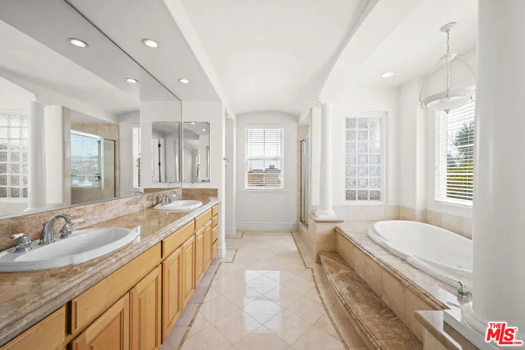 Entertainer Mediterranea two story house, very bright, sky light with 5 bedrooms and 4.50 bathrooms in wonderful Mira Costa neighborhood with an excellent school district, minutes from award winning Mira Costa High school. Carpeted bedrooms on second floor, first floor all through the house has Travertine floor, specious family room connected to the chef’s kitchen with sitting /dining area overlooking beautifully professionally landscaped yard with room for pool. Big island with granite countertop, Great Maple cabinets, top of the line appliances, gas cook top, double electric oven, Refrigerator and freezer, microwave, warmer oven drawer, Direct access from 3 car garage to the house. second floor primary bedroom with extra-large walking closet and fireplace, primary bathroom with jet tub, shower stall, double vanity and marble floor, laundry room with washer, dryer and linen cabinet. close to the beach, shops, restaurants and freeway access.