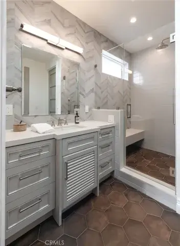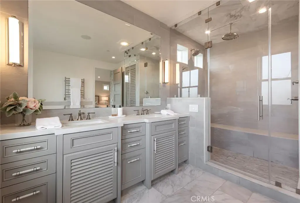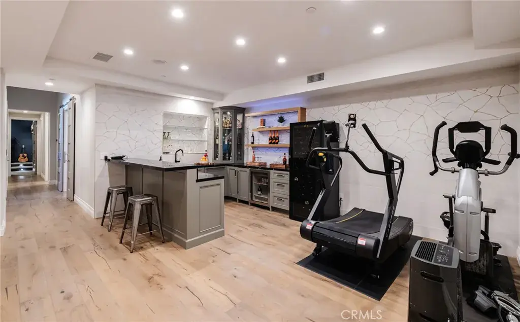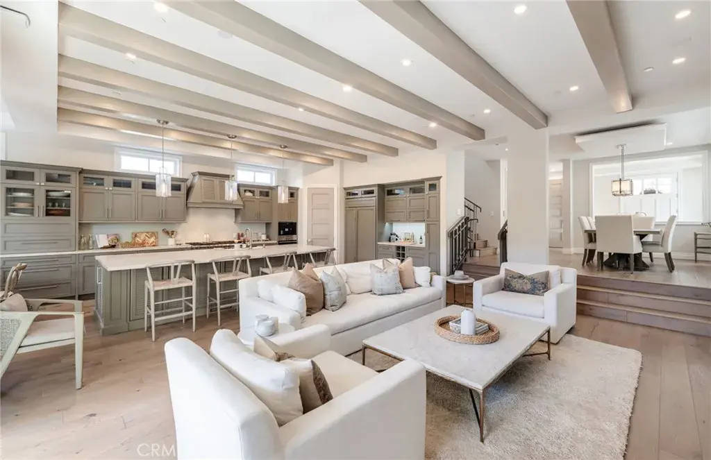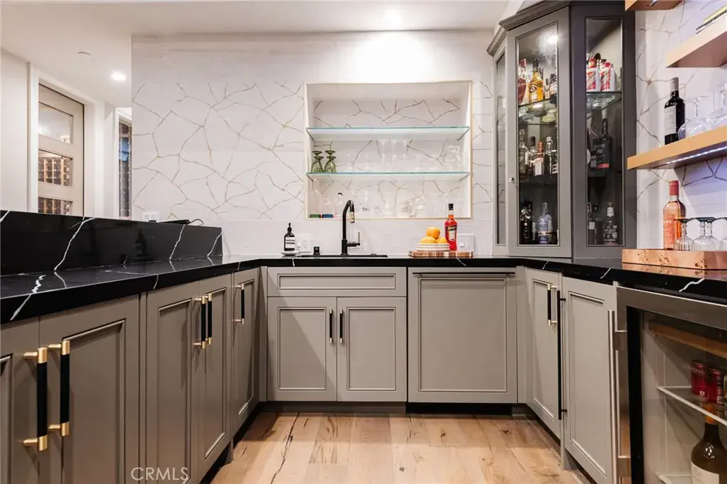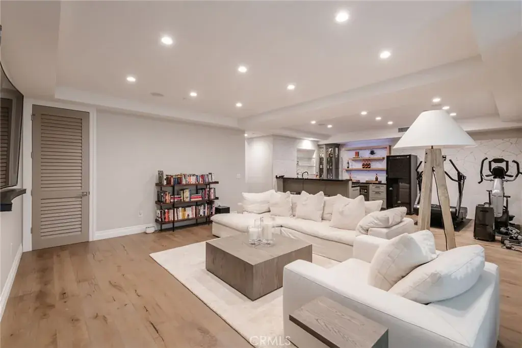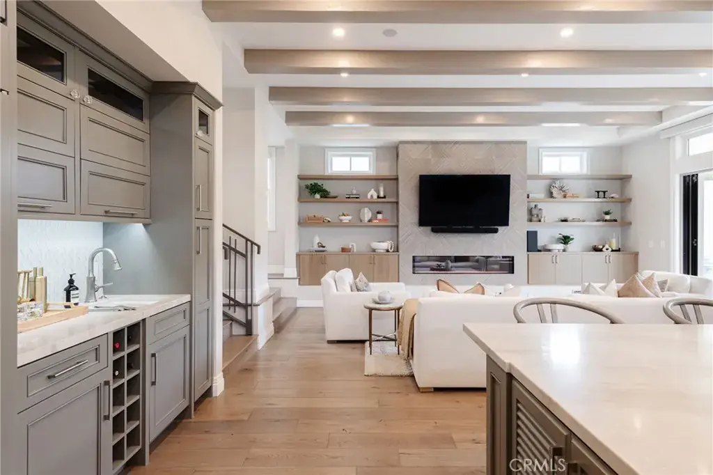 Welcome to 1801 Oak Avenue, a stylish contemporary coastal home featuring six bedrooms and four-and-a-half baths in 5370 square feet of refined living space. Built in 2019 on a 4482 square foot lot, this home offers a harmonious blend of sleek design and cutting-edge technology with the tranquility of coastal living. The open living room features high, beamed ceilings and a striking fireplace wall, making for a sophisticated yet relaxed atmosphere. Folding accordion doors open onto the private yard and patio, creating a fusion of seamless indoor/outdoor living. Al fresco dining and entertaining are a breeze with the built-in Lynx barbecue and prep area, and a turf yard makes for no-fuss maintenance. Chefs will appreciate the stunning kitchen, anchored by a large island with seating for six and offering a SubZero fridge and Wolf, Miele, and Bosch appliances as well as a built-in desk, wet bar, and a cozy breakfast nook. The formal dining room provides an ideal place to entertain or enjoy a leisurely meal at home. Upstairs, the Primary suite is a true sanctuary and features a fireplace, private deck, walk-in closet, and beautiful, spa-like bath with steam shower and soaking tub. Three additional bedrooms and three full baths, as well as a convenient laundry room with sink and custom cabinetry complete the second floor. The finished basement is a haven for relaxing and entertaining and comes complete with a family room, a full-sized wet bar with wine fridge, ice maker and dishwasher, a bedroom and full bath, an office, a home theater, and a 1000+ bottle wine cellar. An elevator and spacious three-car garage, as well as hardwood floors throughout and a thoughtfully integrated Smart Home system are just a few of the amenities found at this beautifully designed, custom home. Perfectly positioned in the highly sought-after tree section of Manhattan Beach, this residence is close to area boutiques, lifestyle amenities, and top-rated restaurants as well as local schools and parks. Enjoy the best of both worlds – a serene and stylish atmosphere not far from the vibrant energy of one of the best beach towns in Southern California.