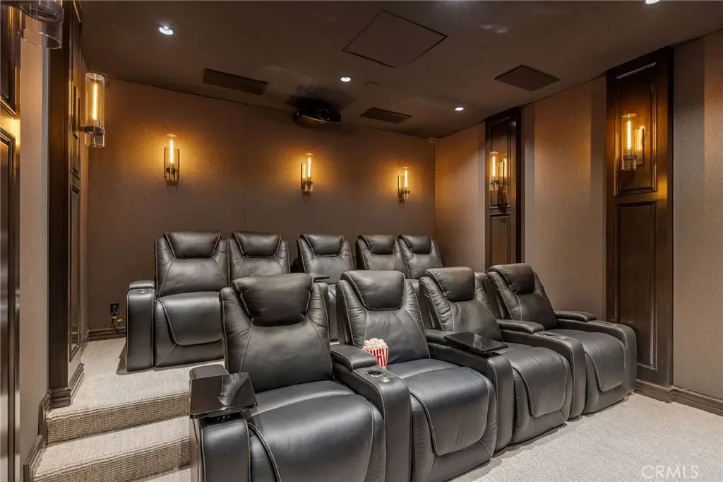The home features five bedrooms, six-and-a-half baths, a private office, and a dedicated movie theater, all serviced by a three-stop elevator. Following its 2020 sale, the residence underwent a transformative $5 million-plus renovation, elevating it to an entirely new standard of craftsmanship and finish.