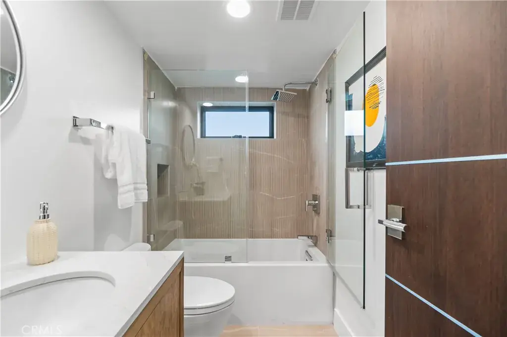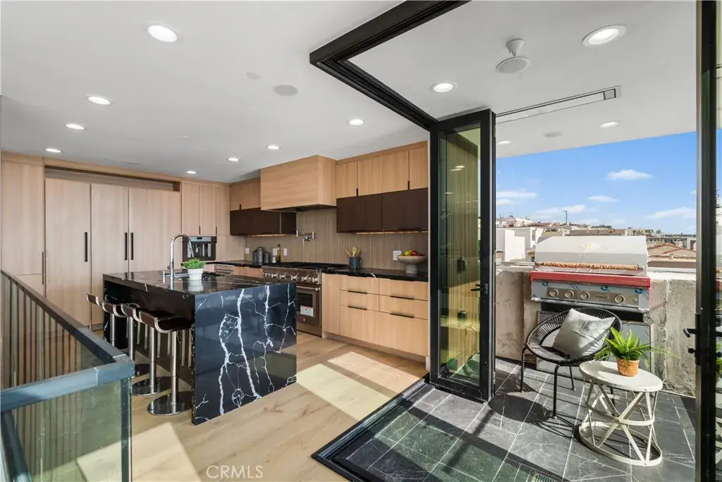 Designed to evoke the sophistication of high-end hospitality, this stunning new construction residence in the coveted Manhattan Beach El Porto offers a peaceful yet invigorating living experience. Every corner of the home has been thoughtfully curated to welcome, soothe, and inspire—combining intricate contemporary design with warm, livable comfort. From sweeping ocean views to breezy walks along the Strand, and from world-class surfing to the charm of local restaurants, this location defines coastal living at its finest. Spanning multiple levels, the home features 4 spacious bedrooms, 4.5 luxurious bathrooms, and over 210 square feet of outdoor balcony space—perfect for soaking in California’s golden sunsets and refreshing sea air. Clean architectural lines and modern finishes are balanced by rich textures and calming tones that instantly make you feel at home. On the first level, a flexible space awaits—ideal as a guest suite, home office, or gym—alongside a cozy family room with a built-in bar and direct access to a private backyard, creating an inviting indoor-outdoor retreat. The top-level main living area is an entertainer’s dream, offering an open-concept design where the gourmet kitchen, dining area, and living room flow seamlessly. Enjoy premium appliances, designer cabinetry, and a sunlit, south-facing balcony with built-in BBQ. Just steps away, the north-facing balcony off the living room invites you to relax by the fireplace with panoramic ocean views and a cooling sea breeze. Comfort and convenience are elevated with features like zoned air conditioning, built-in audio systems, and balcony ceiling heaters for year-round enjoyment. Situated just moments from El Porto’s vibrant dining scene, surf-friendly beaches, and top-rated Manhattan Beach schools, this home offers not just a luxurious living space, but a lifestyle—one of ease, beauty, and inspiration. This isn’t just a home—it’s your personal coastal retreat.