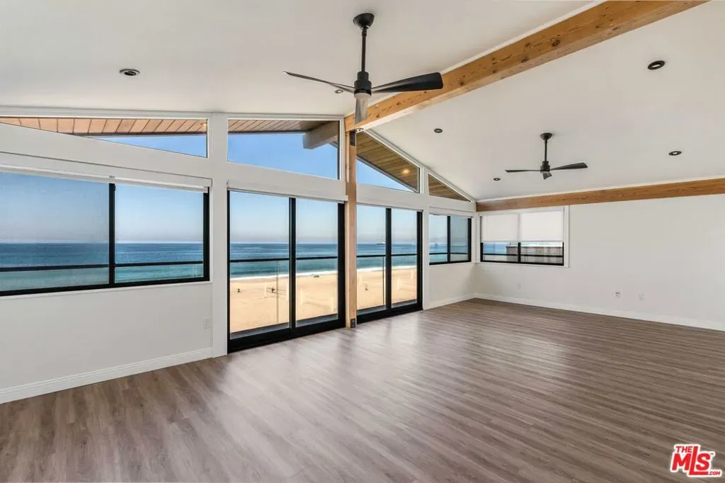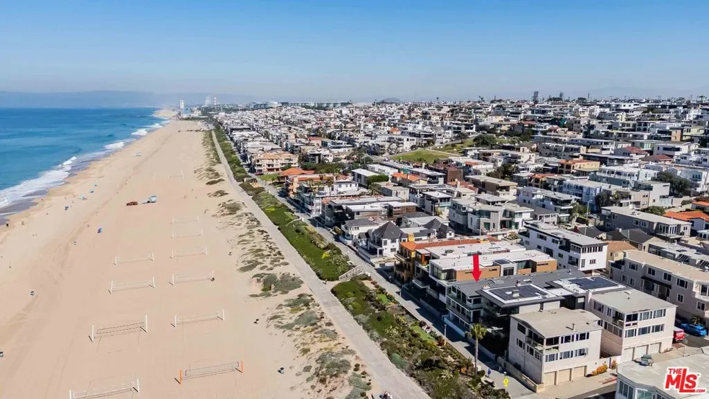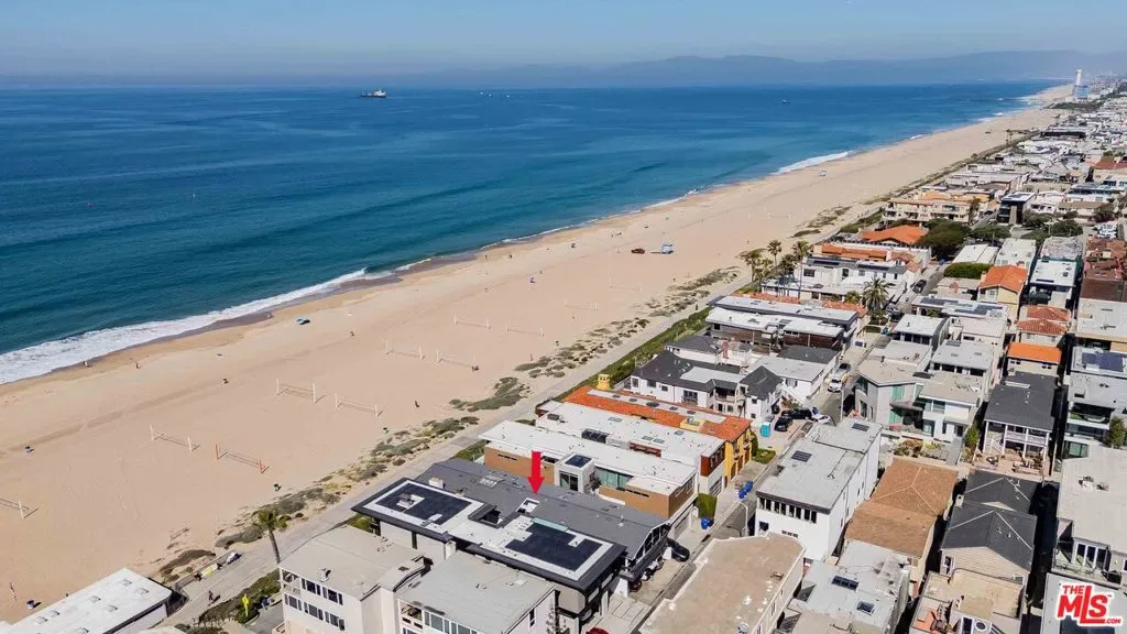 Experience elevated beachfront living from the front row of The Strand, with unobstructed views of the ocean, sand, Manhattan Beach Pier, and rolling whitewater. This newly updated 4-bedroom, 5-bath residence offers a versatile layout designed to capture panoramic coastal views while blending comfort and functionality throughout. The top floor features a stunning primary suite with sweeping ocean views, Fleetwood sliding doors opening to a private balcony, soaring exposed beam ceilings, a massive walk-in closet, and a spa-like bathroom with abundant storage. Two additional bedrooms and a beautifully updated bathroom complete this level. The main (middle) level is ideal for both everyday living and entertaining, showcasing an open-concept layout with floor-to-ceiling windows, a remodeled kitchen with stainless steel appliances, multiple dining areas, a prep pantry, laundry, and a spacious living room with fireplace. A main-level bedroom with private entrance and en-suite bath adds flexibility and privacy. The lower level is designed for true beach living, featuring a large family room with fireplace, a secondary kitchen, two bonus rooms perfect for a gym, office, or media space, and direct access to the sand. An outdoor shower makes transitioning from beach to home seamless. Additional highlights include: Direct Strand and beach access, Expansive balconies with ocean views, 4-car parking (garage + driveway), Multiple flexible living spaces for modern coastal living. A rare opportunity to lease a premier Strand property offering exceptional views, thoughtful design, and one of the most sought-after locations in Manhattan Beach.