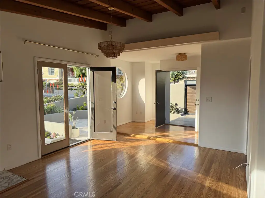 This gorgeous corner house in the quiet and revered tree section of Manhattan Beach is available now. Offering a private and gated front and side yard with deck, hardwood floors in living areas, fireplace, bathtubs, a walk-in closet and stunning wood beam ceilings throughout. The Primary bedroom boasts double doors opening to the patio. This front unit is on the ground floor and completely separate from the rear upper studio which is occupied part time only by the owner. Laundry is shared and located in the garage. Utilities are shared except Internet. Trash included. No Pets. No Smoking.