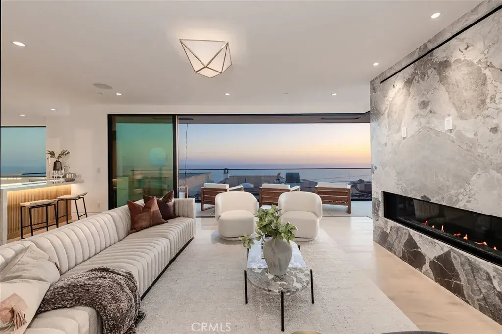 Introducing an unparalleled coastal masterpiece where modern elegance meets breathtaking ocean and whitewater vistas that must be seen to be believed. Situated on a prime corner lot with 4322sf of living space, this newly constructed residence seamlessly blends indoor and outdoor living spaces for ultimate Southern California luxury. Almost all of the 84 ocean-facing feet of the upper level are framed by Fleetwood doors and windows which truly capture the stunning panoramic ocean views from Palos Verdes and Catalina Island all the way to Malibu. This is by far one of the finest homes built in Manhattan Beach! The gourmet kitchen, equipped with state-of-the-art appliances and white oak cabinetry, flows effortlessly into the spacious living and dining areas, making it perfect for both intimate gatherings and grand entertaining. The primary suite serves as a spa-like sanctuary, featuring a steam shower, Venetian plaster walls, two-sided fireplace, and a generous walk-in closet. Additional four junior suites are masterfully designed, each with en-suite bathrooms and ample closet space. The expansive decks provide a serene setting for sunset views over the ocean, while the outdoor living area on the walkstreet offers ultimate relaxation and entertainment. Situated just steps from the beach, this property provides convenient access to upscale dining, boutique shopping, and top-rated schools. The corner location of this home allows for the key advantages of capturing up to 2 extra feet of width for the home, much more natural light, and much better views.