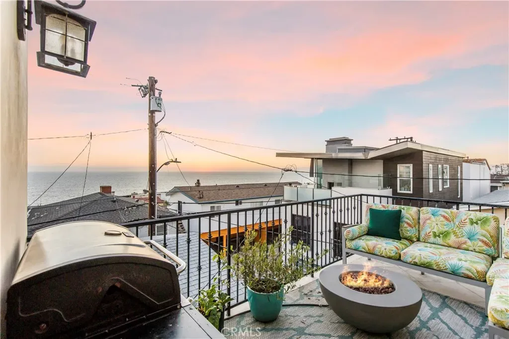 Furnished Rental long term. Panoramic Ocean views of Catalina Island, Malibu and the surf. Nestled just two blocks from the sandy shores of Manhattan Beach, this Italian villa-style home offers breathtaking ocean views and luxurious amenities. The meticulously designed interior boasts high-end furnishings, enhancing the elegance of every corner with Brazilian cherry hardwood floors. Step onto the expansive deck, perfect for hosting cocktail hours or indulging in the spectacle of our magnificent sunsets, painting the sky with vibrant hues.