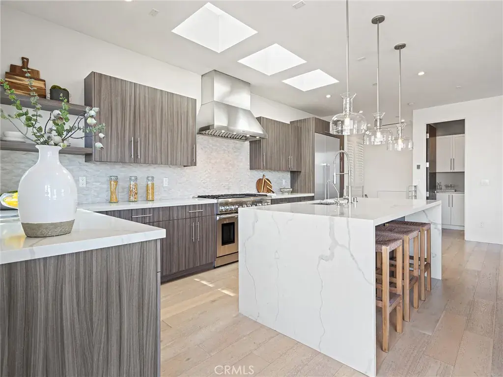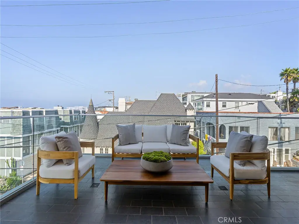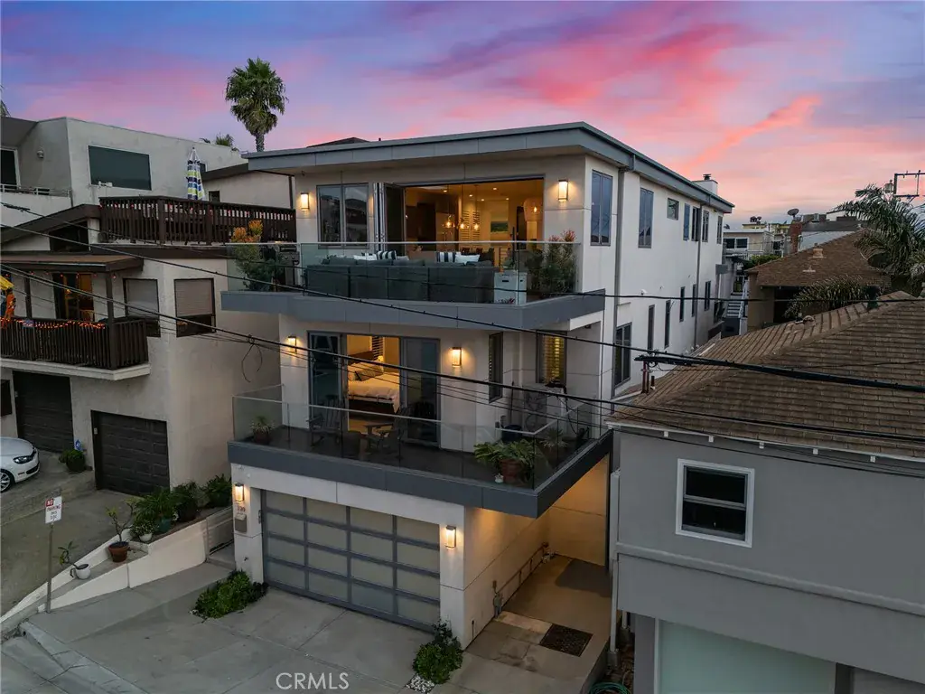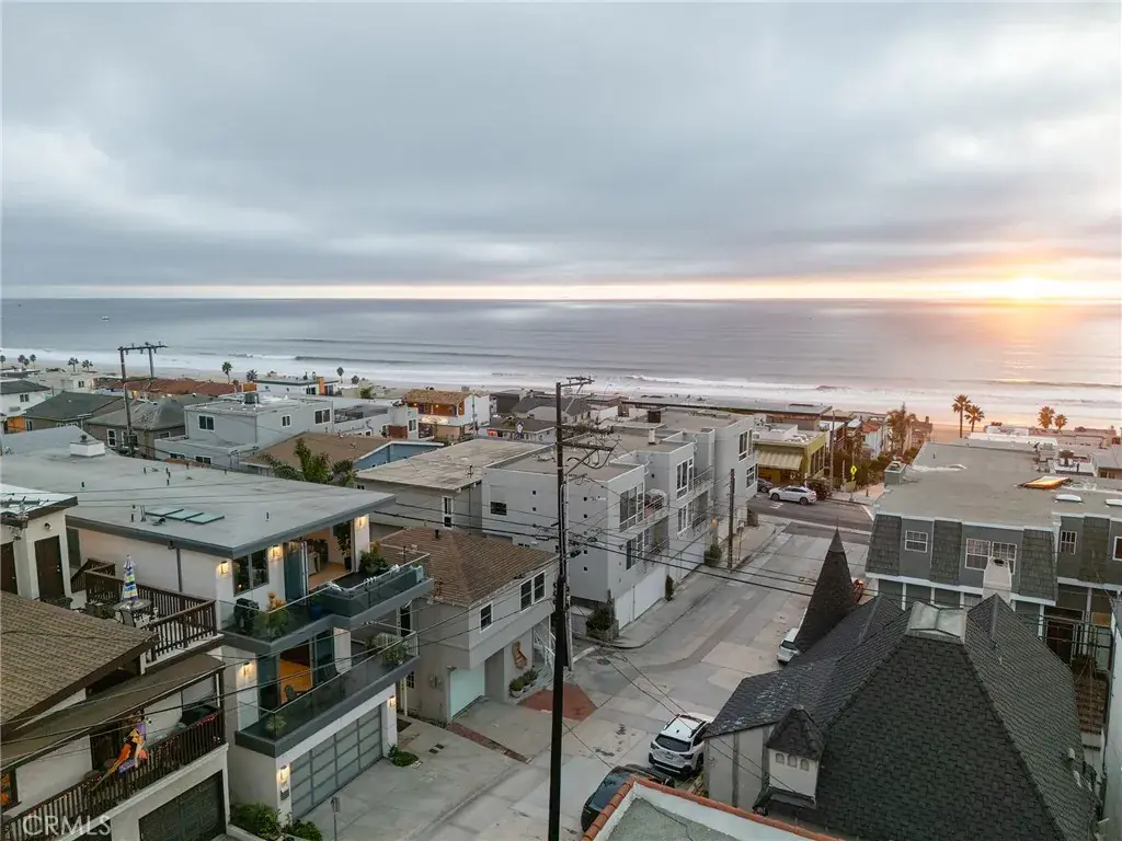 Experience captivating ocean views of the majestic Pacific Ocean and vast sky above unfolding throughout the day in movement from the comfort of your own home. Entertain with ease as you slide open your wall of glass doors to enjoy the expansive indoor-outdoor living with over 450 square feet of ocean view balconies seamlessly adjoining your open concept living level. Just three blocks from the beach and steps from beloved restaurants, coffee houses and spas in the heart of Manhattan Beach’s vibrant north end, this like-new, modern style townhome offers the dream coastal lifestyle you’ve earned. Leave your car charging in the garage all weekend long and get the flip flops out. Views with sophisticated style. Privacy with proximity. Security with space, for loved ones or hobbies or both. Come in from the beach, shower off, and prepare dinner as the sunset enchants everyone lounging around the kitchen island, full of top-of-the-line Thermador appliances. Step out from the living room to BBQ as you watch the sun dip below the horizon. Every bedroom enjoys its’ own bathroom. The lower level fourth bedroom suite is so spacious it could be used as a man cave, guest bedroom or bonus living room with an office. This home has been so impeccably maintained it is the definition of turnkey for those with a demanding job or busy schedule; just bring your toothbrush. You’re also positioned for the shortest commute in the city to the Westside and all points north. This property is an ideal retreat for those with an active lifestyle seeking a newer construction home with ocean views, year-round indoor-outdoor living and immediate access to everything Manhattan Beach has to offer.