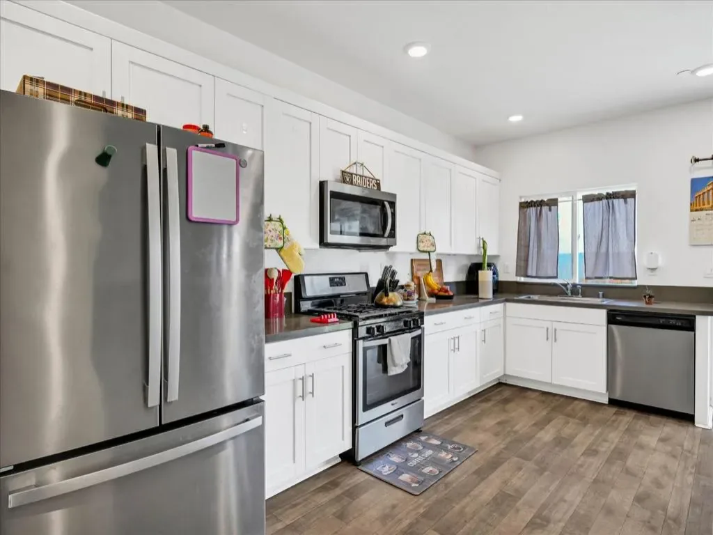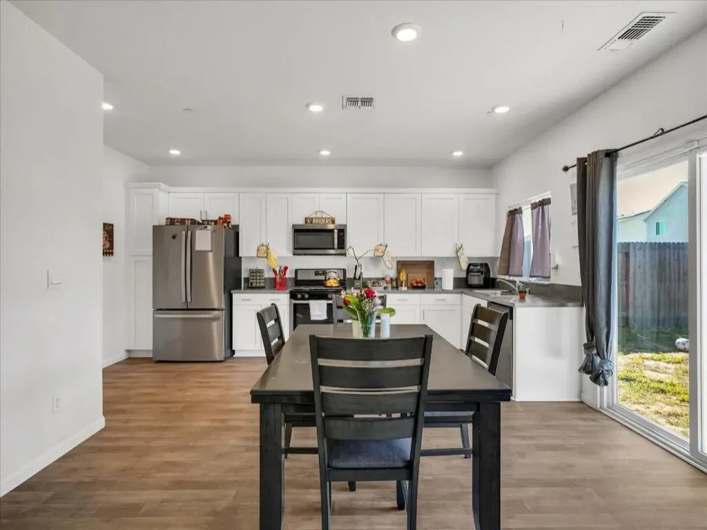 Welcome to 1415 Crimson Ln, Manteca, CA 95336 a modern single-family home offering comfort and style. Solar paid off !!! Built in 2022, this residence boasts 4 bedrooms and 2.5 bathrooms across 1,678 square feet of living space; The open-concept layout creating a spacious and inviting atmosphere. The gourmet kitchen is equipped with white shaker-style cabinets, quartz countertops in iced-gray, stainless steel appliances, Etc. Upstairs, you’ll find generously sized bedrooms, including a master suite with a walk-in closet and a luxurious en-suite bathroom. The home is adorned with luxury vinyl plank flooring throughout and includes smart features for modern living, two-car attached garage and a landscaped front yard. Located in Manteca’s desirable North Main neighborhood that offers convenient access to local schools, shopping centers with a gorgeous Community park near 99 & 120 HWY Perfect for commuters.