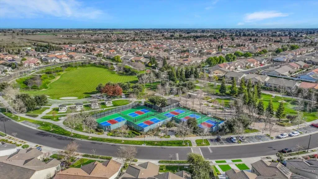 Welcome to this impeccably updated 3-bedroom residence in Manteca’s premier Del Webb Woodbridge 55+ community. This home stands out with sophisticated modern upgrades, including brand-new custom cabinetry that features a generous pantry, and elegant wainscoting throughout the entry and living room. The interior shines with plentiful natural light and premium laminate flooring in all bedrooms. The gourmet chef’s kitchen serves as the heart of the home and allows for truly open concept living. The dedicated office features custom built-ins and a sizeable closet for ultimate functionality. Retreat to the primary suite, which offers a private en suite bath with double vanities and a large walk-in closet with custom organizers. Functionality meets luxury with a laundry room sink and raised pedestal washer and dryer. The backyard features an attached pergola perfect for relaxing, barbecuing or entertaining al fresco outdoors. The owned solar array on the roof drops the cost of electricity dramatically – passing on these considerable savings to the next owner. Residents of this in-demand community enjoy world-class amenities such as a clubhouse, pool, pickle ball courts, and a softball field. This move-in-ready gem combines high-end finishes with a vibrant active adult lifestyle.