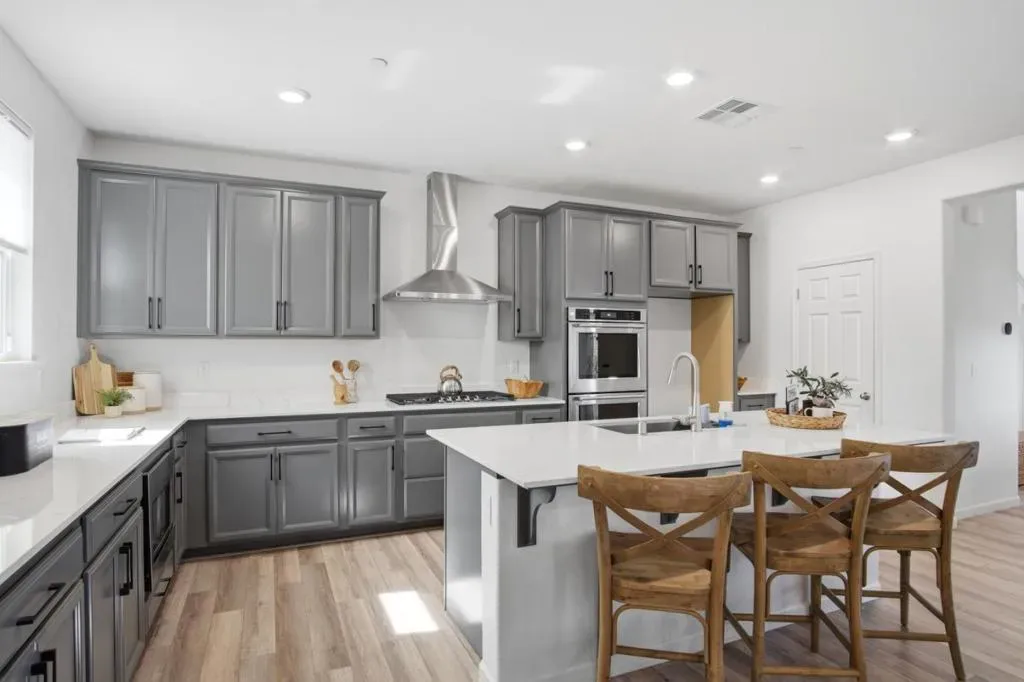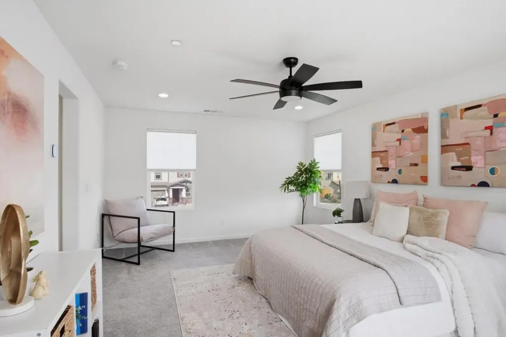 Beautifully upgraded 4-bedroom, 3-bath home built in 2021, offering approximately 2,182 sq ft of living space in a desirable Manteca neighborhood. This well-maintained two-story home features an open-concept floor plan with a spacious kitchen that flows into the dining and living areas, ideal for everyday living and entertaining, along with numerous upgrades throughout that provide a modern, move-in ready feel. A full bedroom and bathroom are located on the main level, offering flexibility for guests, extended family, or a home office, while upstairs includes additional bedrooms and a generously sized primary suite with ample natural light. The fully finished backyard is designed for enjoyment, featuring a built-in pool and spaperfect for outdoor living, entertaining, and relaxing. Additional features include central heating and air, an attached garage, and a low-maintenance lot, all conveniently located near schools, parks, shopping, and major commuter routes. Turnkey property with upgrades and completed backyardno need to wait on new construction.