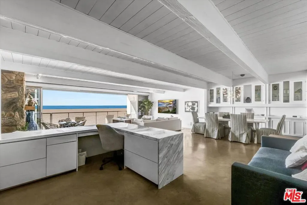 Welcome to your oceanfront paradise in one of the best funded/managed HOA’s in the area (close to a million in reserves!). Enjoy 30 feet of ocean frontage with breathtaking, unobstructed views stretching from Malibu to Catalina. Floor-to-ceiling glass doors open onto a spacious oceanfront balcony, offering direct beach access via private steps to the sand. The absence of continuous sidewalks and nearby parking ensures a peaceful, secluded atmosphere.Designed for seamless indoor-outdoor living, the home features polished cement floors throughout, a step-down living room with a stone fireplace, and a versatile oceanfront great room with space for dining and an office. The kitchen showcases ocean views, stainless steel appliances, and granite countertops.Additional highlights include 2 large en-suite bedrooms, a laundry room, powder room and 3 reserved parking spaces. Perfectly situated for year-round beach walks,dolphin watching, and spectacular sunsets. FULLY FURNISHED AVAILABLE.