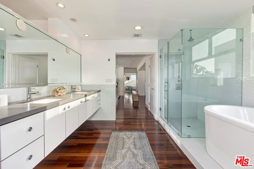 Incredible architectural contemporary residence in prime Marina del Rey, filled with natural light from multiple skylights, soaring ceilings, and hardwood floors throughout. The home features Caesarstone countertops, a private elevator to the rooftop entertainment deck, and an elegant entry. Fireplaces in both the living room and the primary suite, which includes a sitting area, custom walk-in closet, and abundant storage. Multiple terraces on every level offer sweeping views of the ocean, city lights, and mountains, and view of the community garden. Located just a short walk to the water and a myriad of shops. A must see!