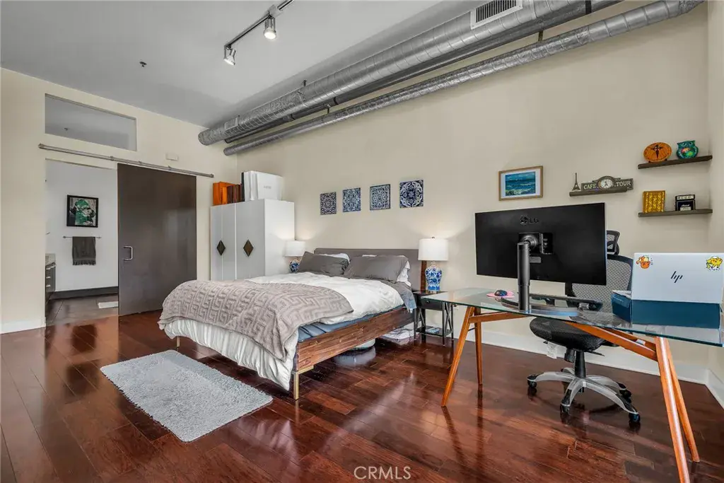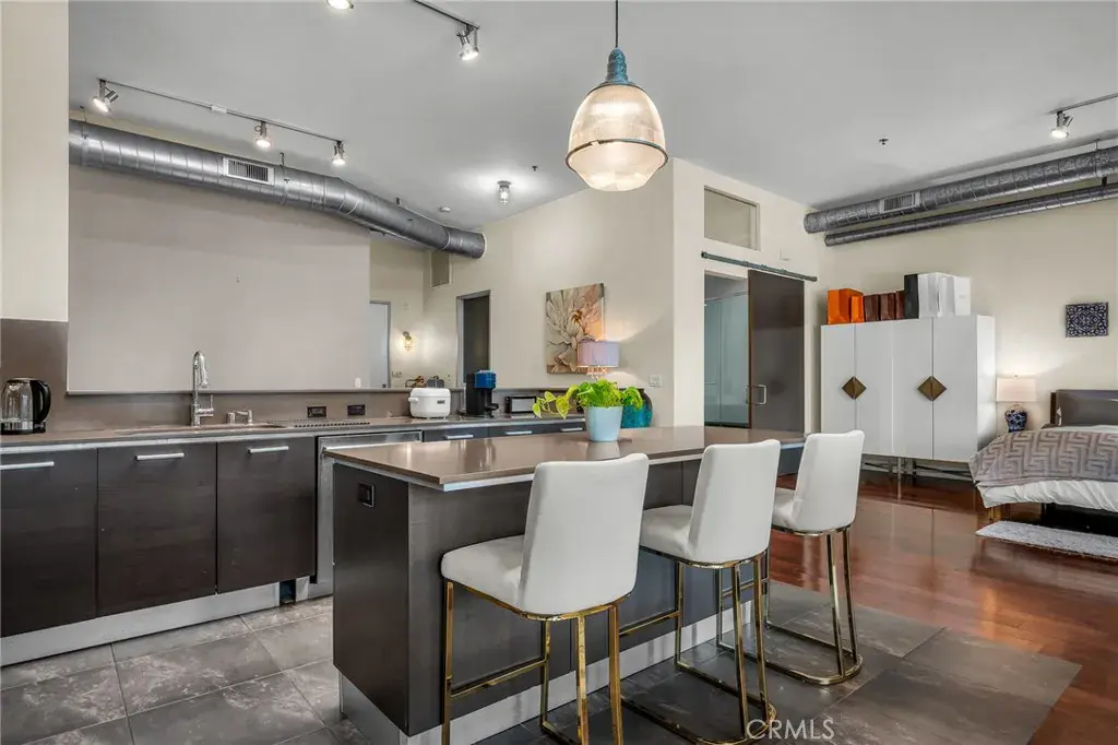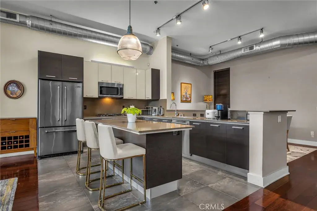 Welcome to the ultimate Marina lifestyle in the highly sought-after Marina Arts District, just moments from the energy of Marina del Rey and the iconic Abbot Kinney Boulevard. Located in the stylishly designed Steel Lofts building, this industrial-chic residence blends modern luxury with dramatic architectural detail. Soaring ceilings, exposed ductwork, and a sun-drenched open-concept floor plan create an impressive yet inviting living space, enhanced by sleek dark hardwood floors and floor-to-ceiling windows. The chef’s kitchen is both functional and striking, featuring a large center island, JennAir stainless steel appliances, and elegant Caesarstone countertops—perfect for entertaining or everyday living. Two beautifully appointed bathrooms elevate the experience: the primary suite showcases a sliding barn door leading to an oversized shower with dual shower heads and a built-in bench, while the second bathroom offers a deep soaking tub for ultimate relaxation. The versatile dining room can be enclosed and used as a second bedroom or private office, ideal for today’s flexible lifestyle. Step outside to a spacious balcony—perfect for morning coffee or evening unwinding.